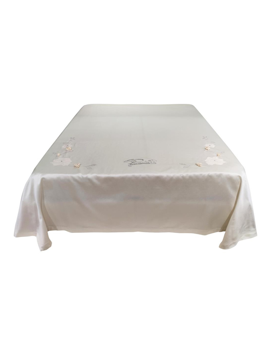 Copriletto estivo matrimoniale in raso rifinito con applicazioni ricamate,