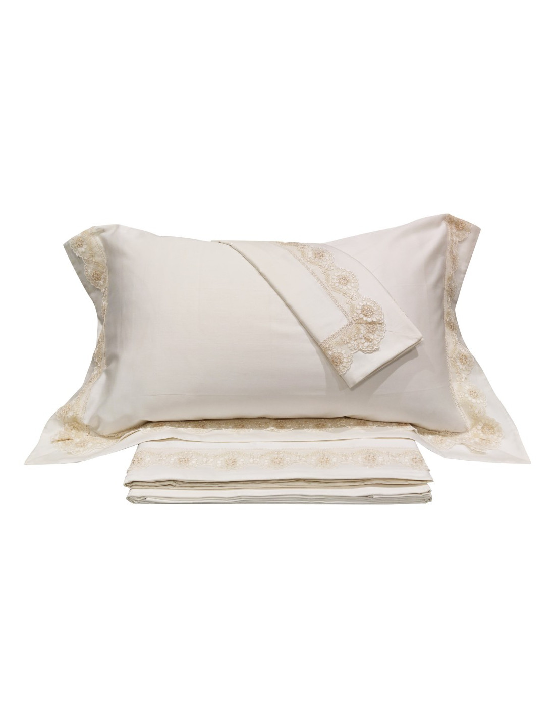 COMPLETO LENZUOLA 2 PIAZZE IN RASO DI PURO COTONE CON PIZZO