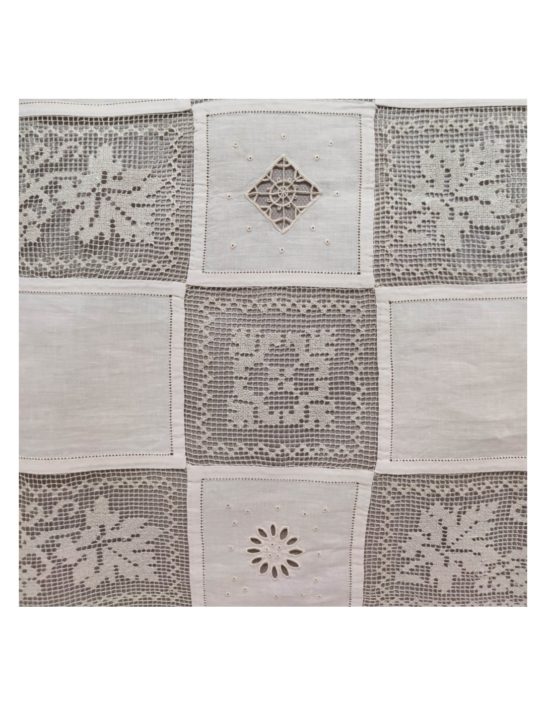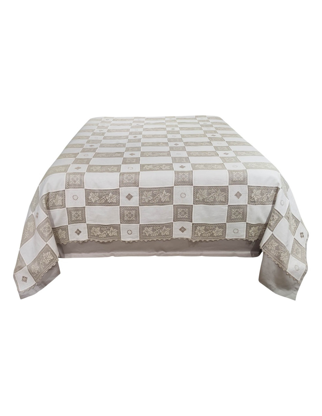 CENTRO DEL RICAMO COPRILETTO MATRIMONIALE IN LINO 250 X 265 CM - QUADRI