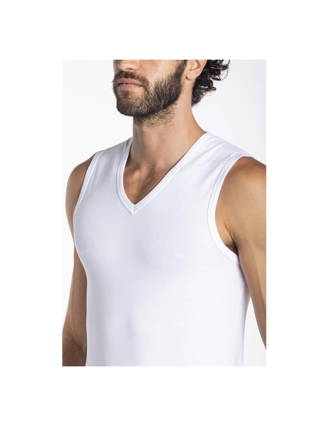 Maglia uomo smanicata scollo a V in cotone jersey 40/1 elasticizzato con una