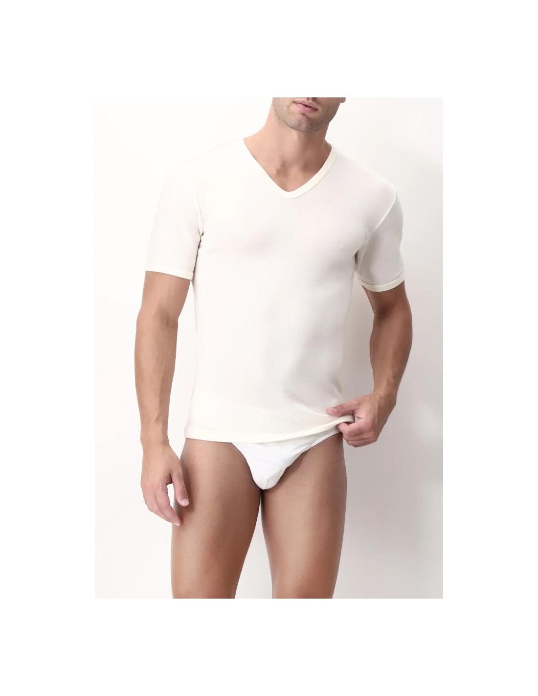 T-SHIRT UOMO SCOLLO A V IN MISTO LANA, COTONE E SETA