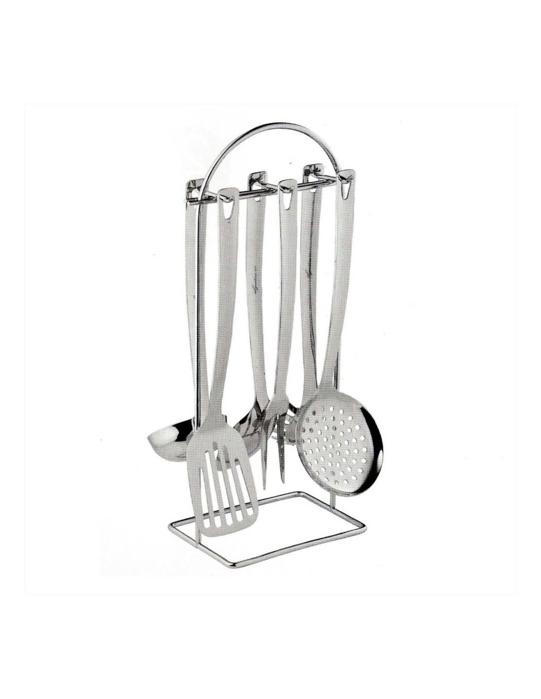 Set Completo con rack e 6 mestoli in acciaio inox.