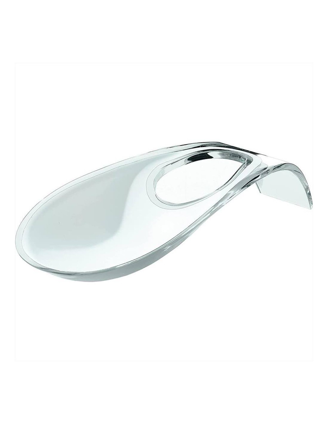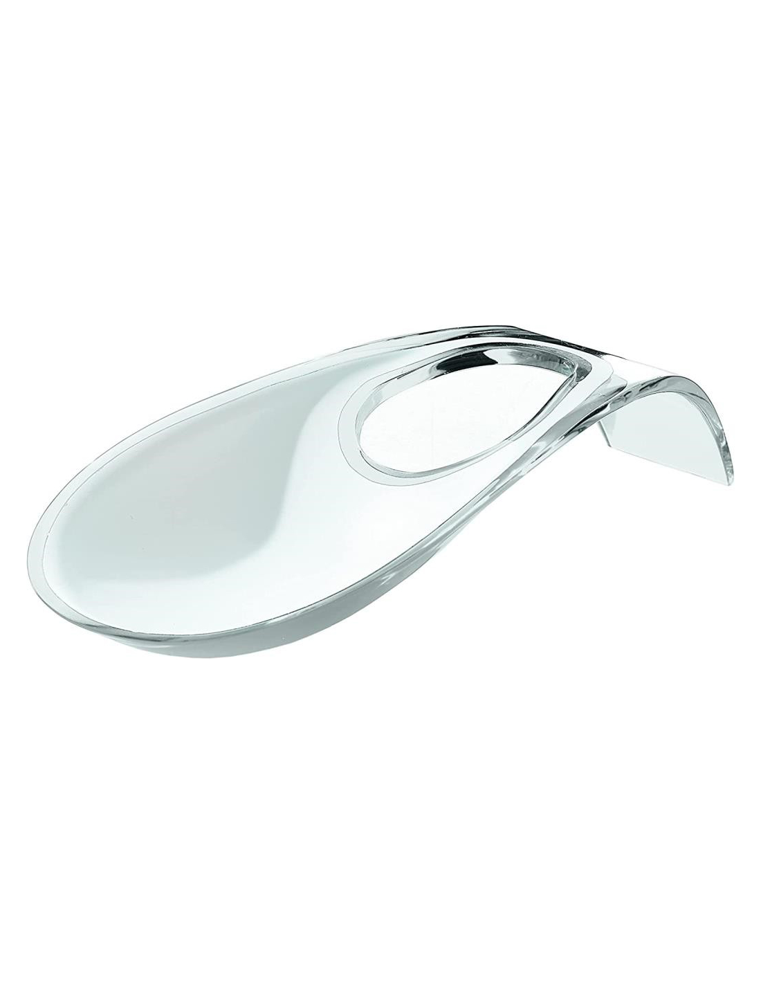 Pratico ed elegante poggiamestolo realizzato in materiale plastico bicolore disegnato da Guzzini Lab. Dotato di un foro sull'estremità che permette di appenderlo e facilita la presa delle posate che vengono appoggiate. Lavabile in lavastoviglie.