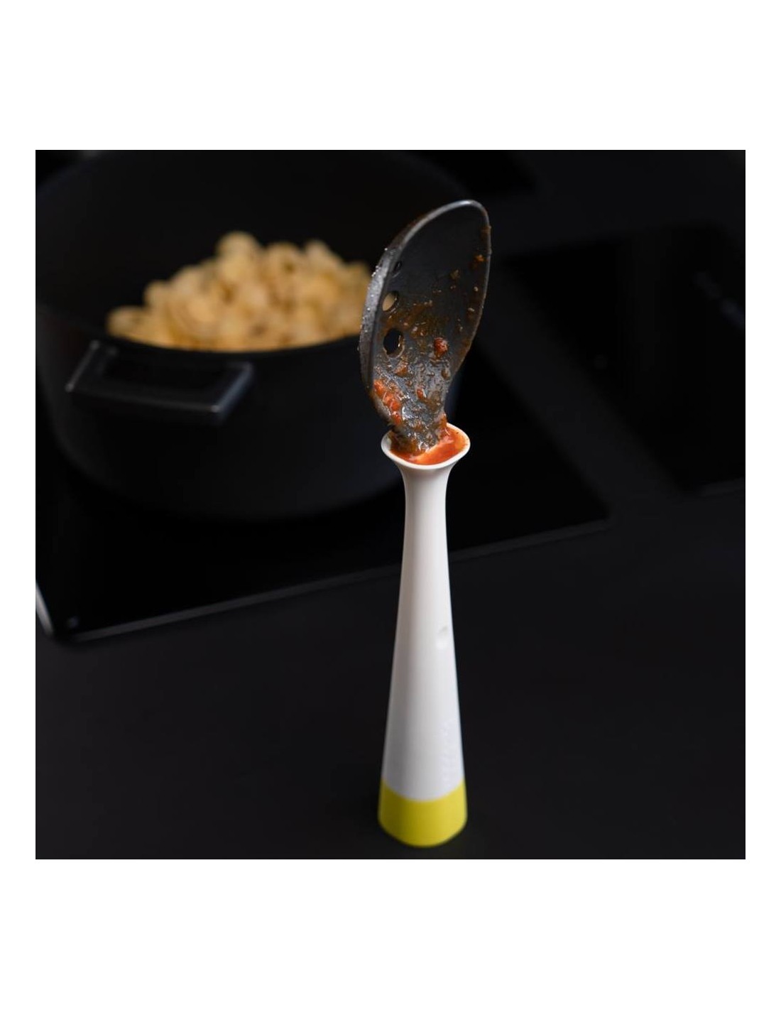 Appoggia-cucchiaio addio. Gli utensili UP! Si appoggiano in piedi sul top, mentre le gocce di cottura ricadono nell’apposito collettore. La massima comodità senza sporcare.