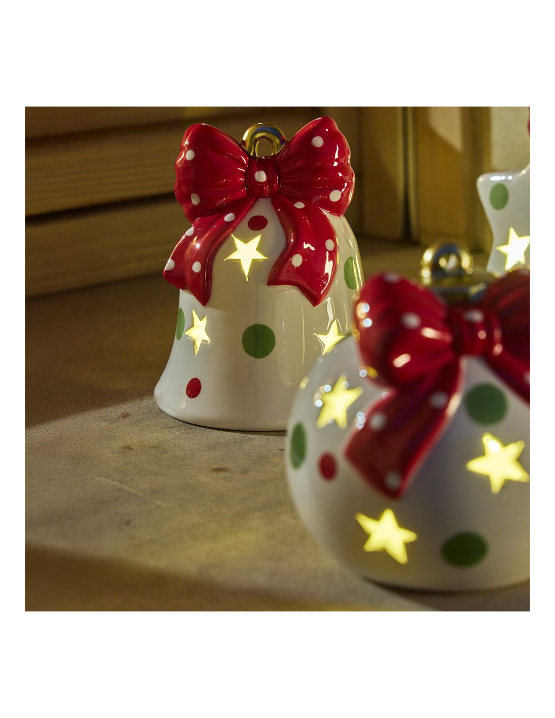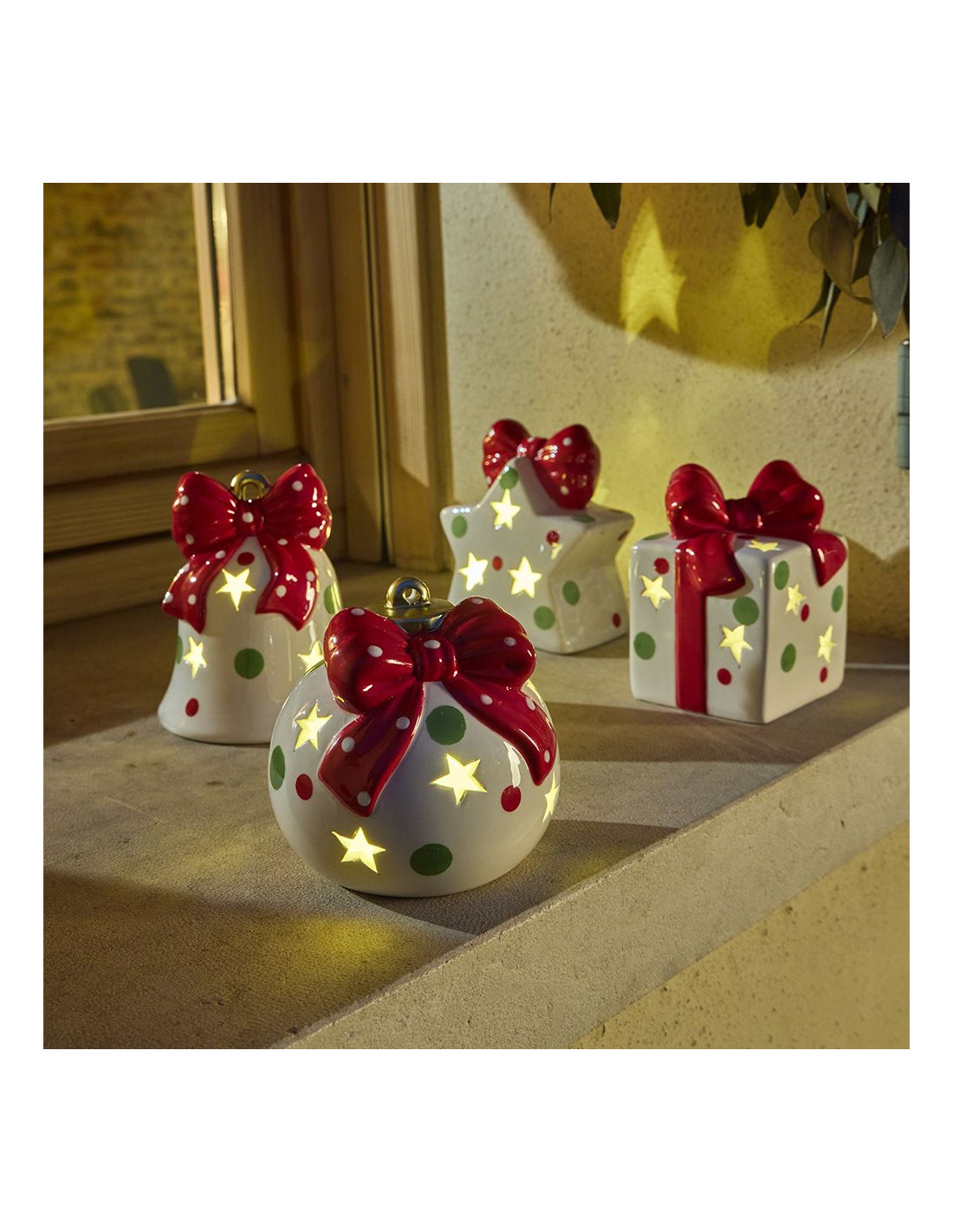 Perfetta per comò, mensole, tavoli e qualsiasi spazio da valorizzare, articoli con un design elegante e atmosfera festiva, creando un Natale accogliente e luminoso.