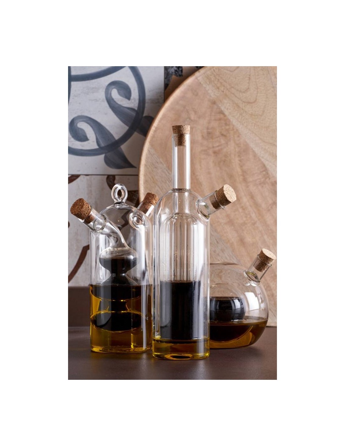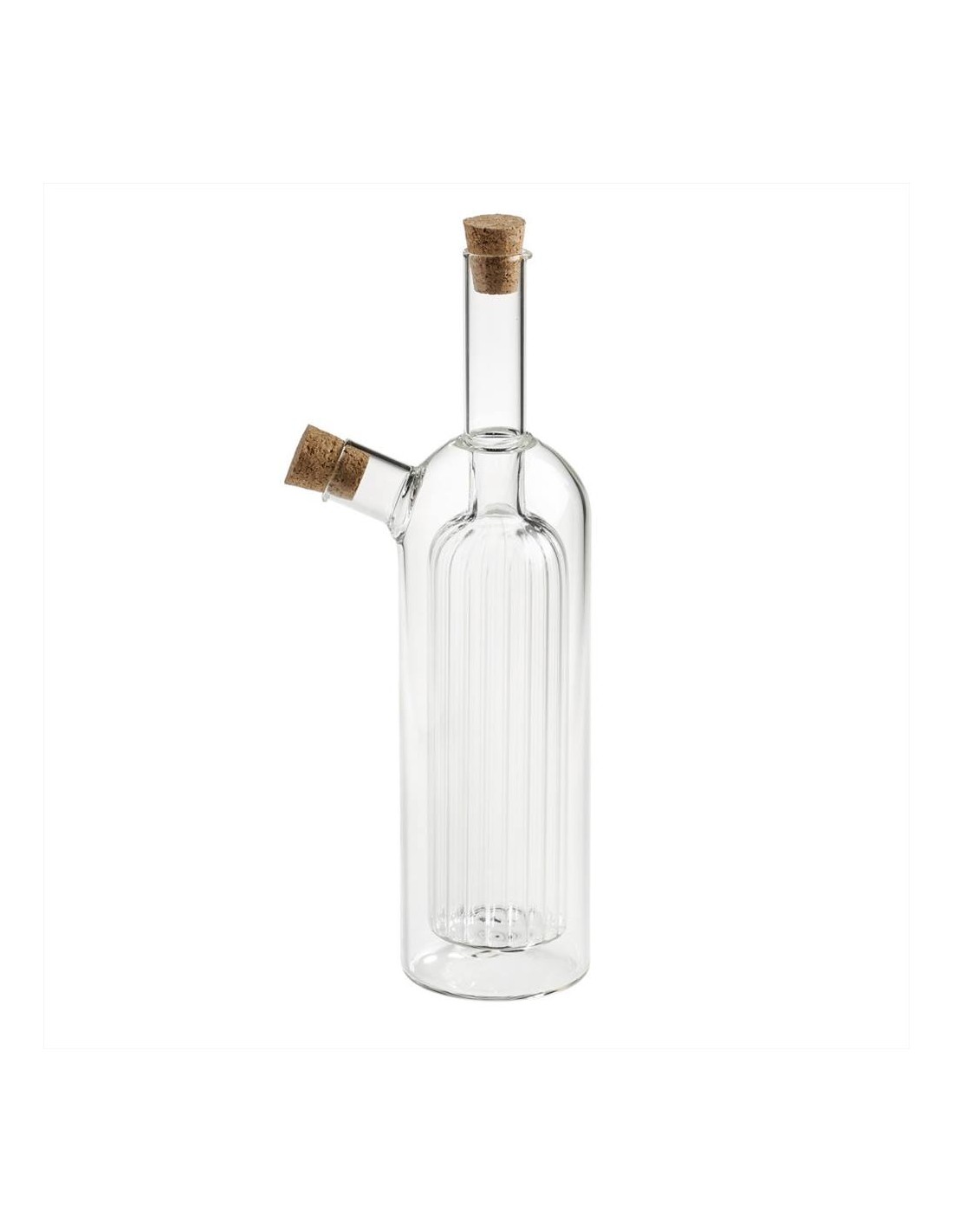 Oliera con acetiera rigata in vetro soffiato a bocca e tappi in