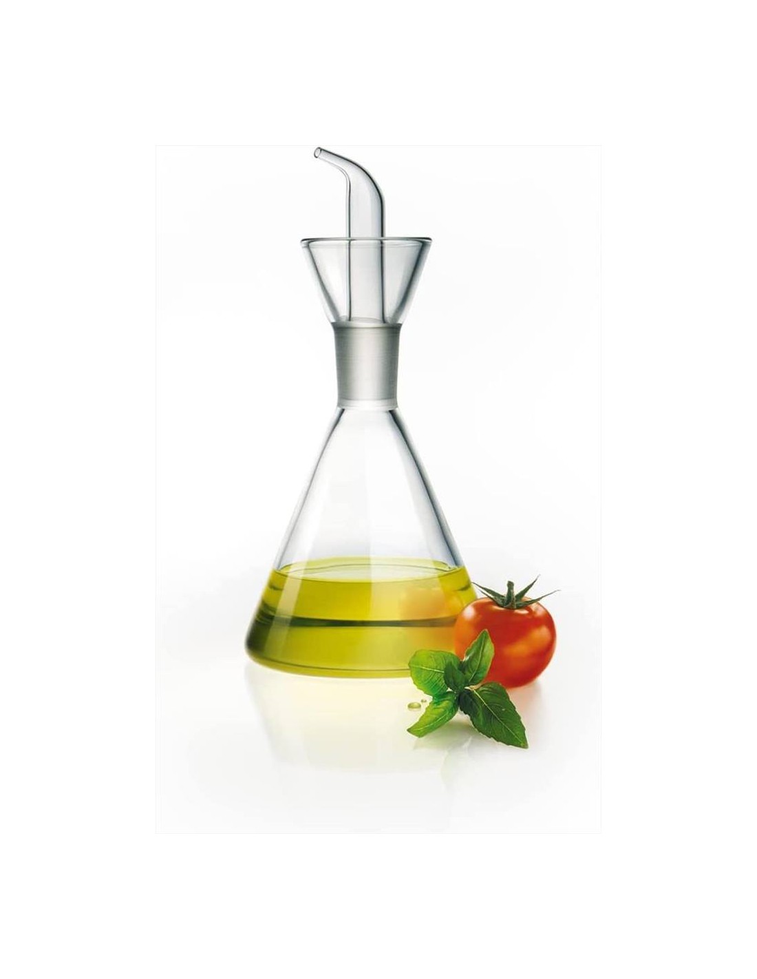 Il beccuccio con la sua particolare forma garantisce il 100% di salvagoccia, la satinatura del vetro e la perfetta aderenza nel collo dell'oliera permettono che il beccuccio rimanga saldo e fermo nella sua sede.