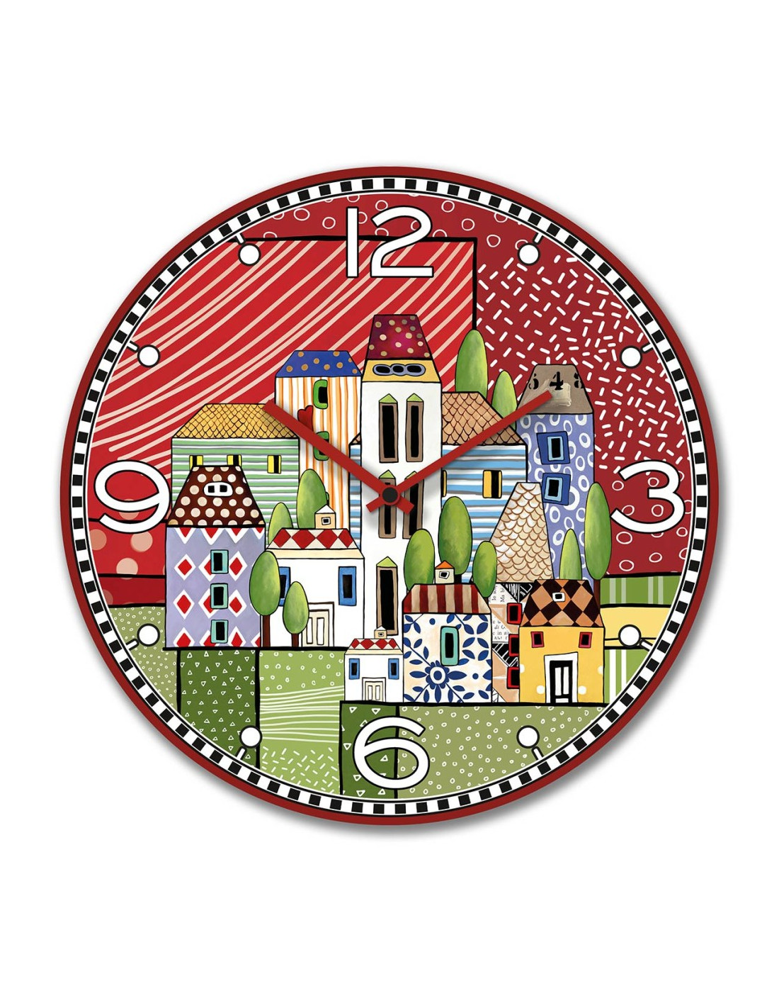 Orologio da parete in MDF con grafica vivace ispirata ai borghi italiani.