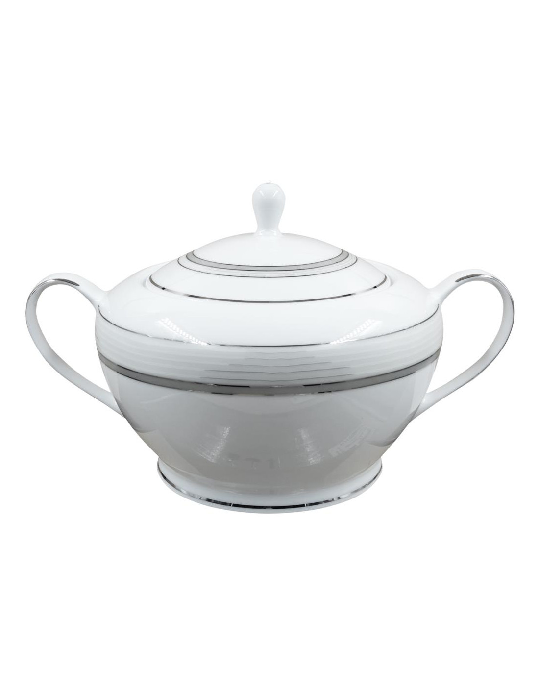 Servizio piatti elegante in Fine Porcelain con bordo in filo platino, il decoro ricorda il Pianeta Giove.
