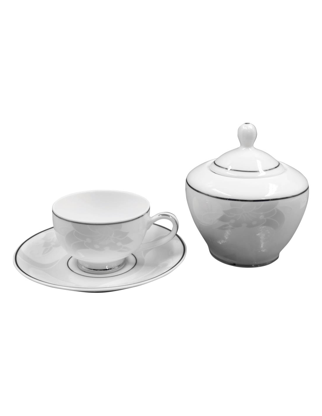 SET TAVOLA CON CAFFE PER 12 PERSONE IN PORCELLANA FILO PLATINO