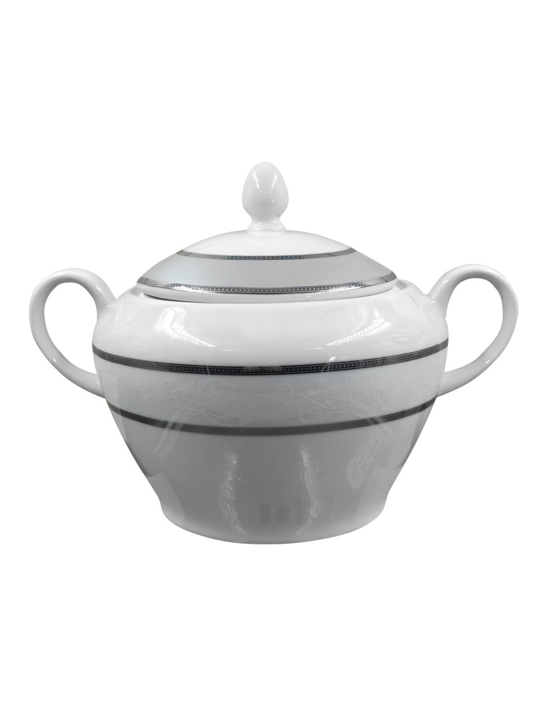 Servizio piatti elegante in Fine Porcelain con bordo platino, decorazioni floreali eleganti e cerchi continui.