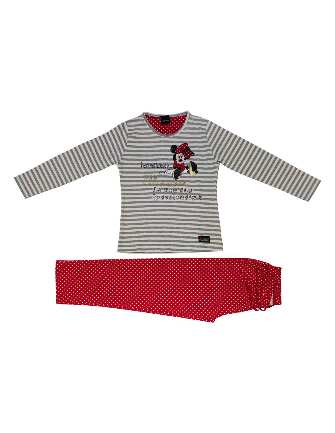 DISENY PIGIAMA LUNGO DA BAMBINA GIROCOLLO IN COTONE INTERLOCK - MINNIE