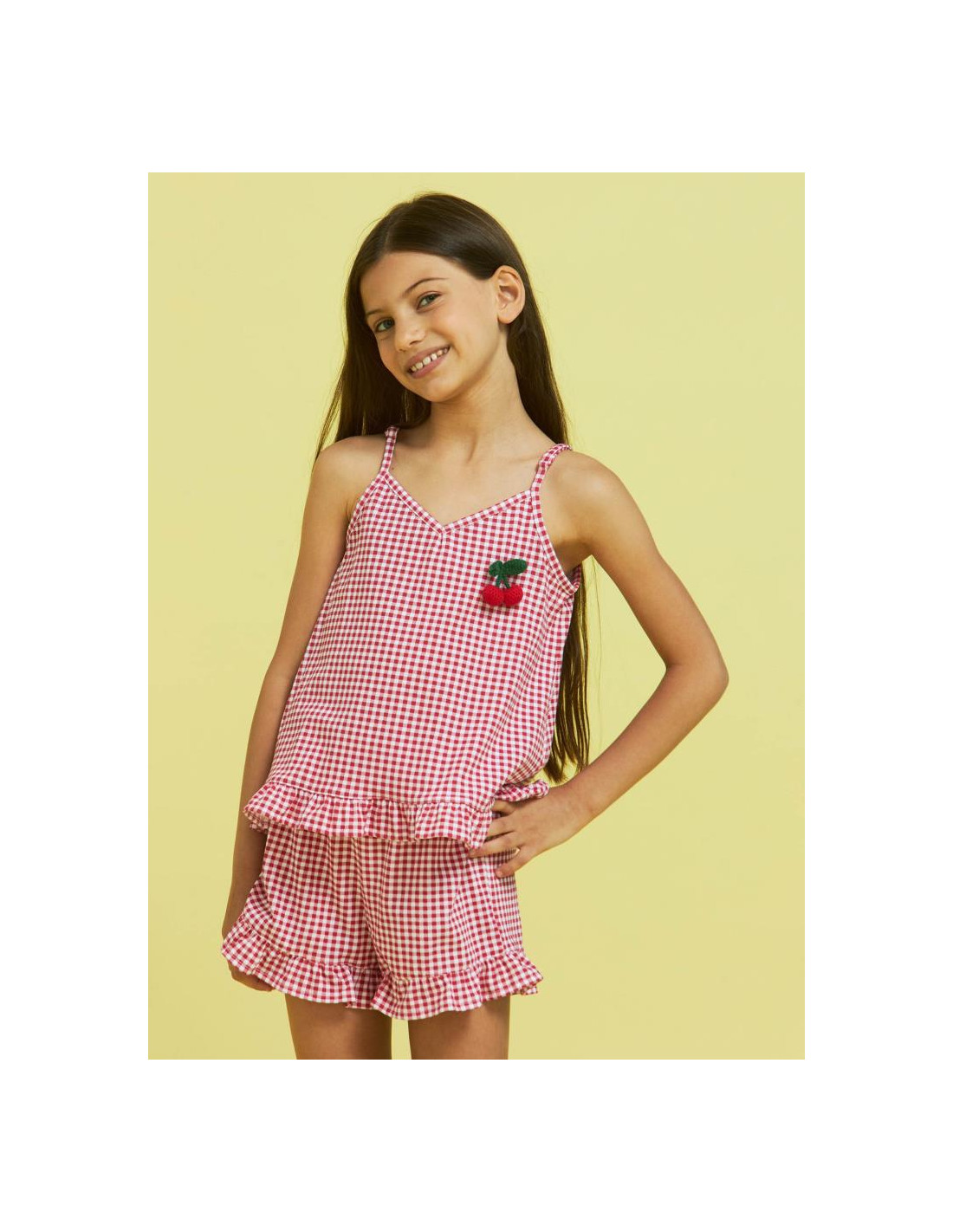 Pigiama Bambina estivo in cotone con ciliegia applicata.