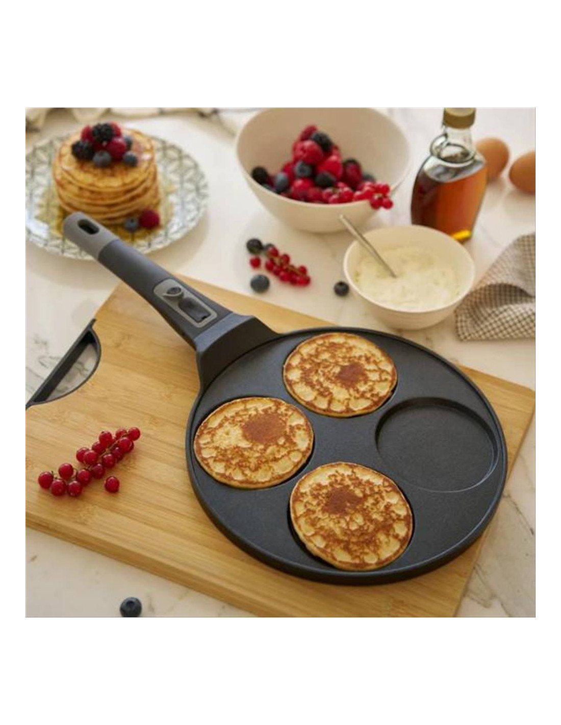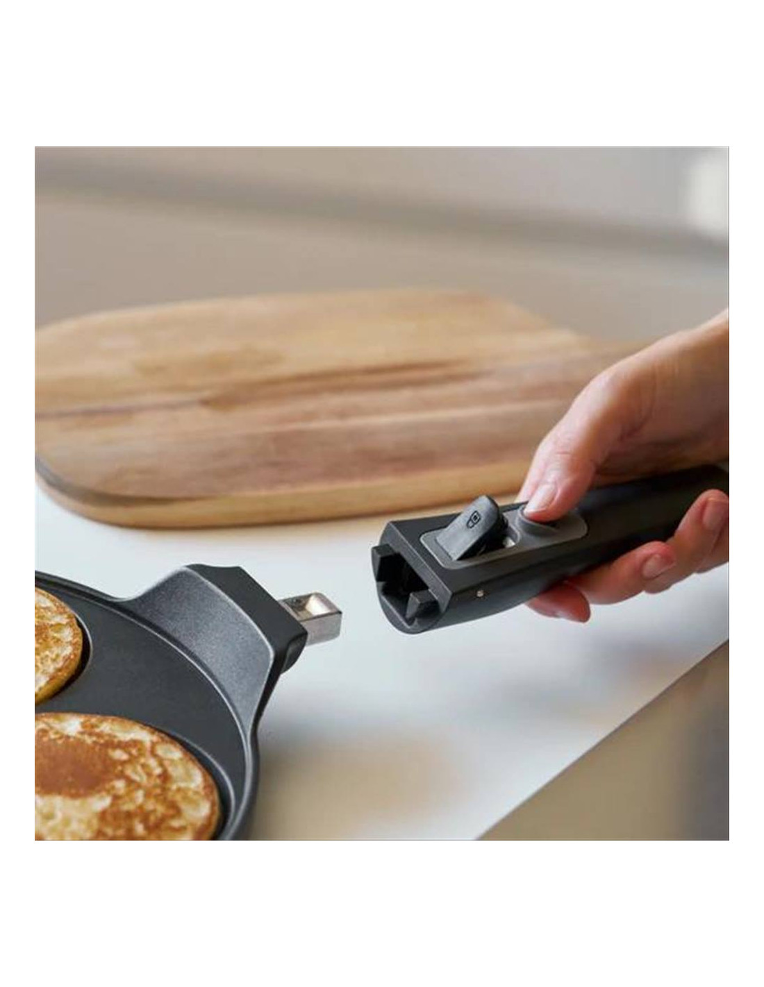 La padella per pancake, con manico removibile per agevolare lo stoccaggio