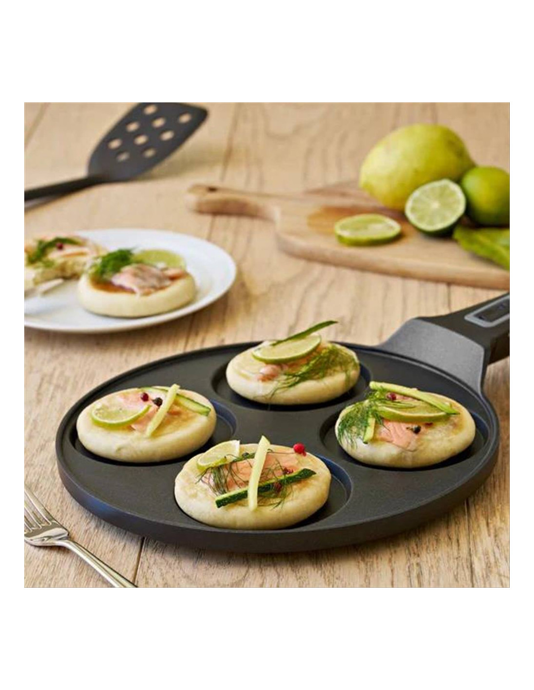in cucina, presenta 4 sedi ideali per creare 4 soffici pancake della stessa