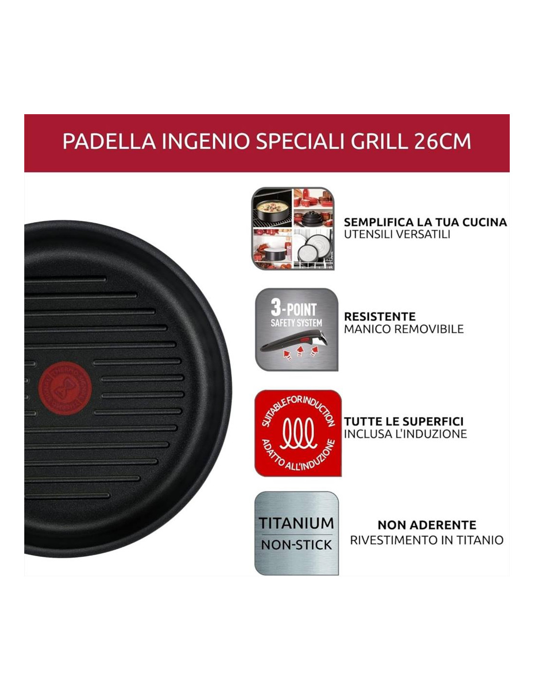 all'induzione, è compatibile con il manico amovibile Ingenio ed è adatto per