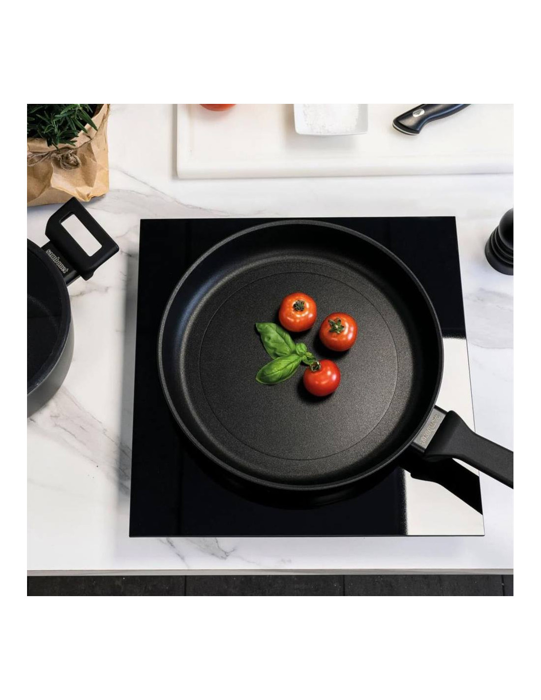 Fondo ultrapiatto stabile sul piano cottura, riscaldamento senza dispersioni.