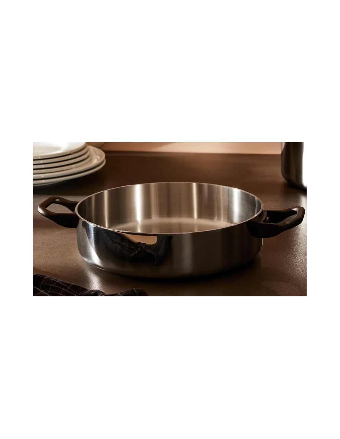 Casseruola bassa 2 manici in trilamina (AISI 430, alluminio, acciaio inossidabile 18/10). Fondo in acciaio magnetico adatto anche alla cottura a induzione.