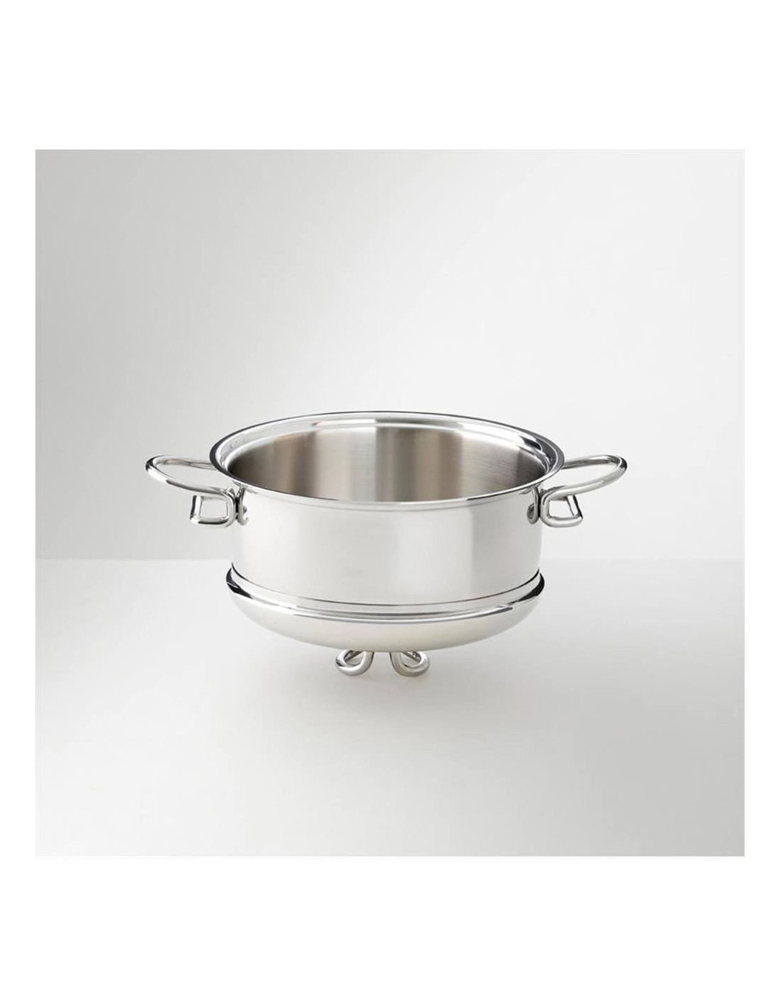 Fondo triplo strato termodiffusore composto da Anima di Alluminio purissimo, incapsulata dentro un doppio fondo in acciaio inox 18/10. Spessore 3,5 mm