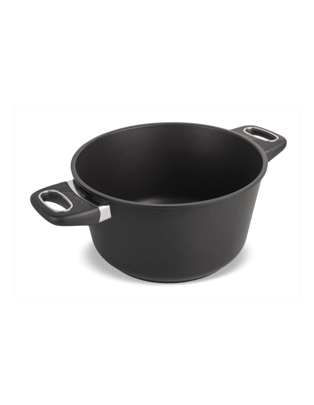 Pentola in alluminio ad alto spessore con rivestimento antiaderente per una cottura salutare e con pochi olii e condimenti.