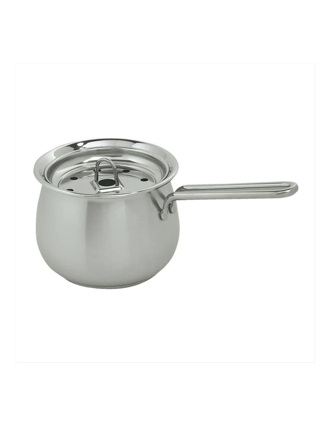 Bollilatte Olympia diametro 12 cm, senza coperchio. In Acciaio Inox 18/10 ad alto spessore lucidata a specchio esternamente e satinata internamente per una pulizia quotidiana facilitata.