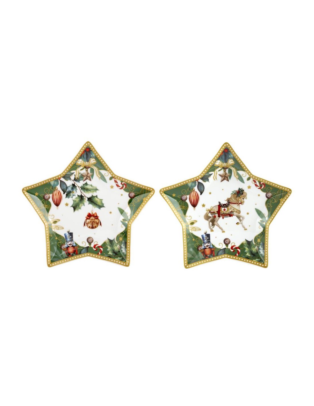 Set 2 piattini dolce a forma di stella con decorazione natalizia