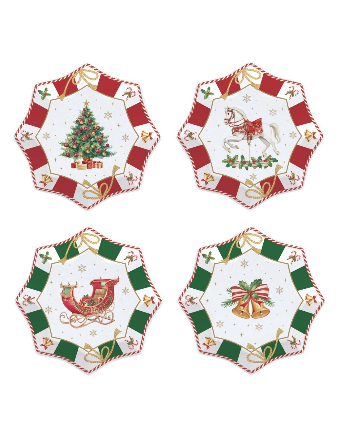Set 4 piatti dessert in porcellana decorta collezione Christmas