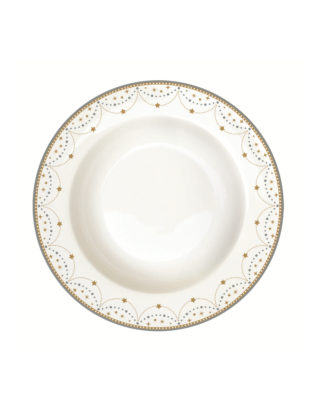 Servizio piatti natalizio per 6 persone, in porcellana decorata e dettagli in oro.