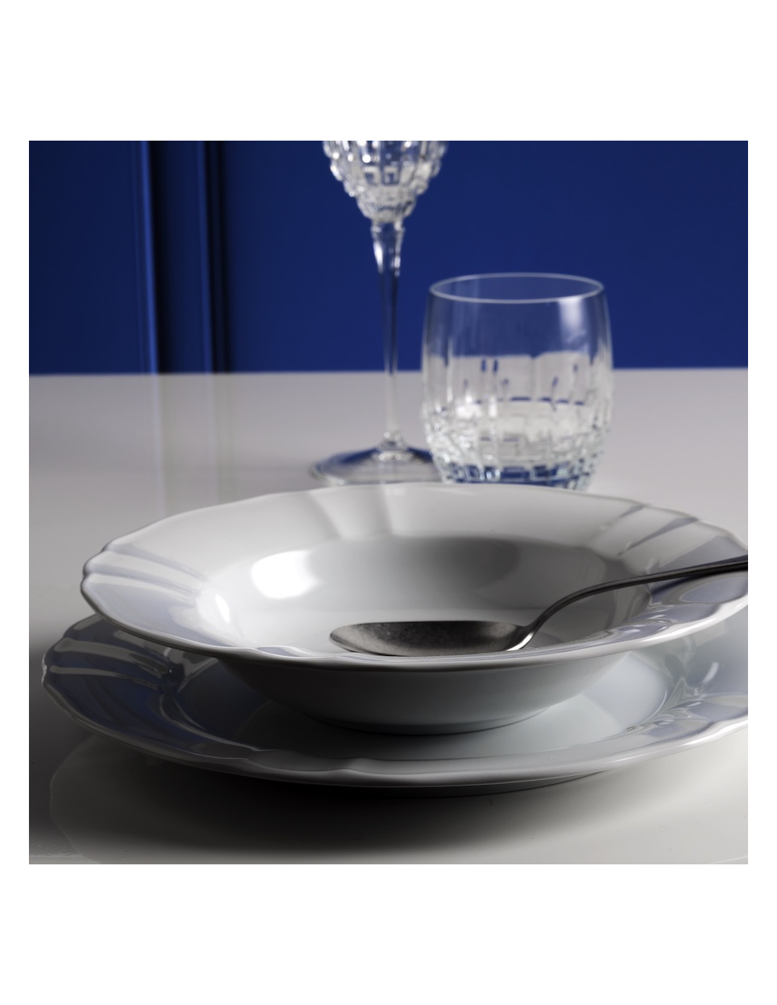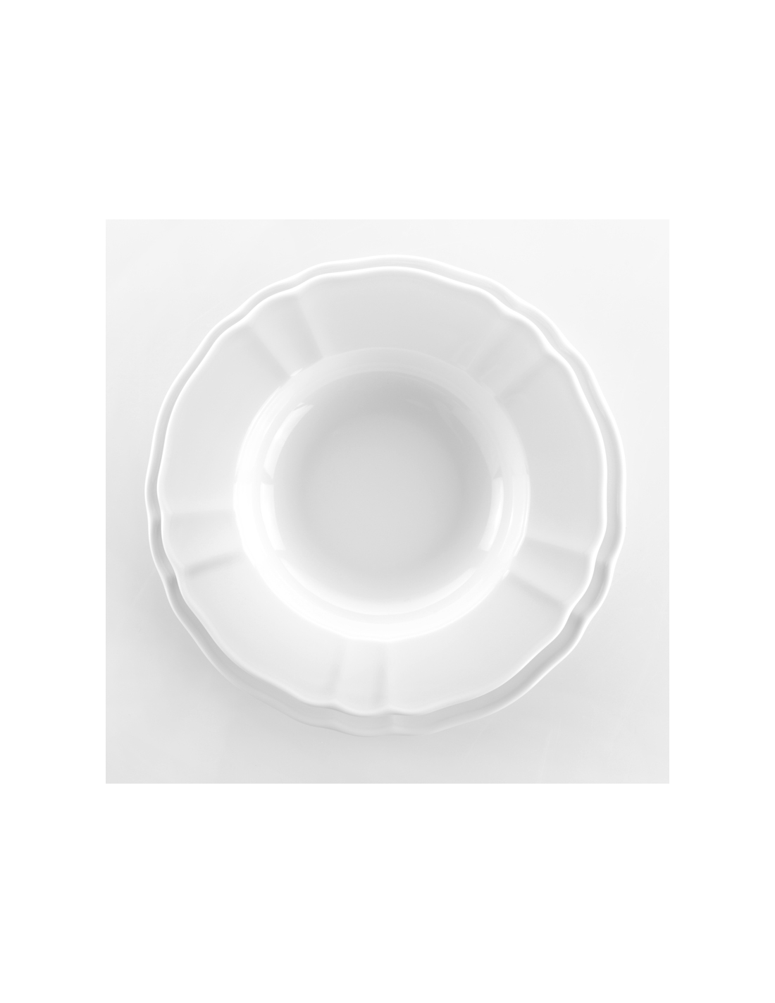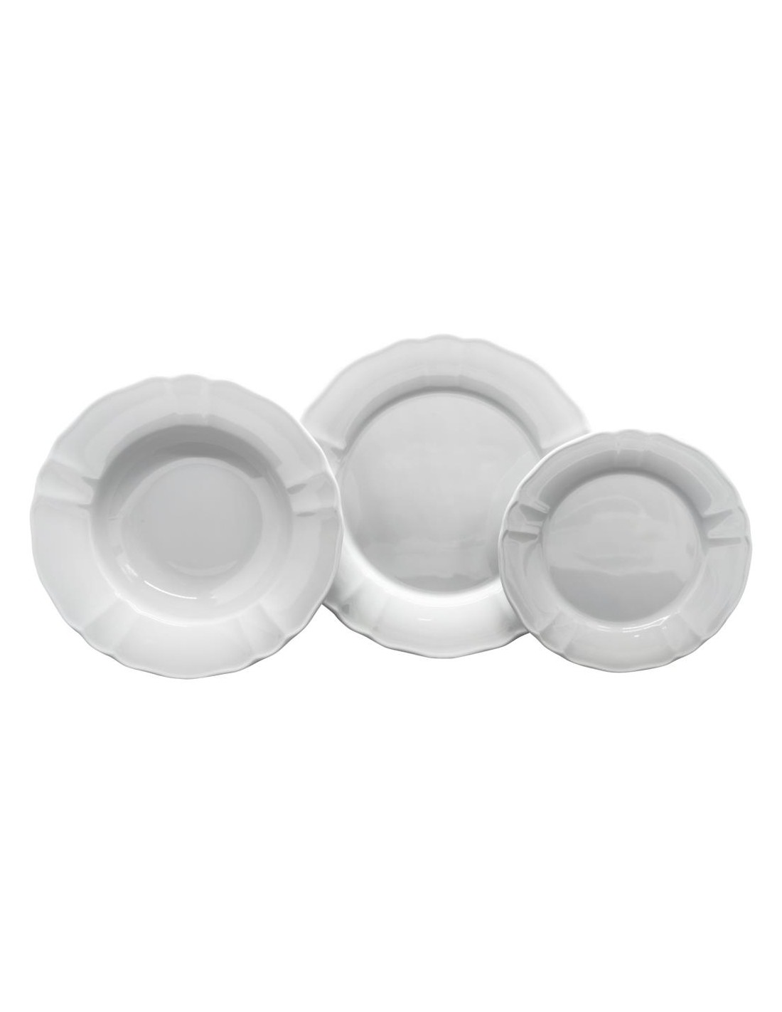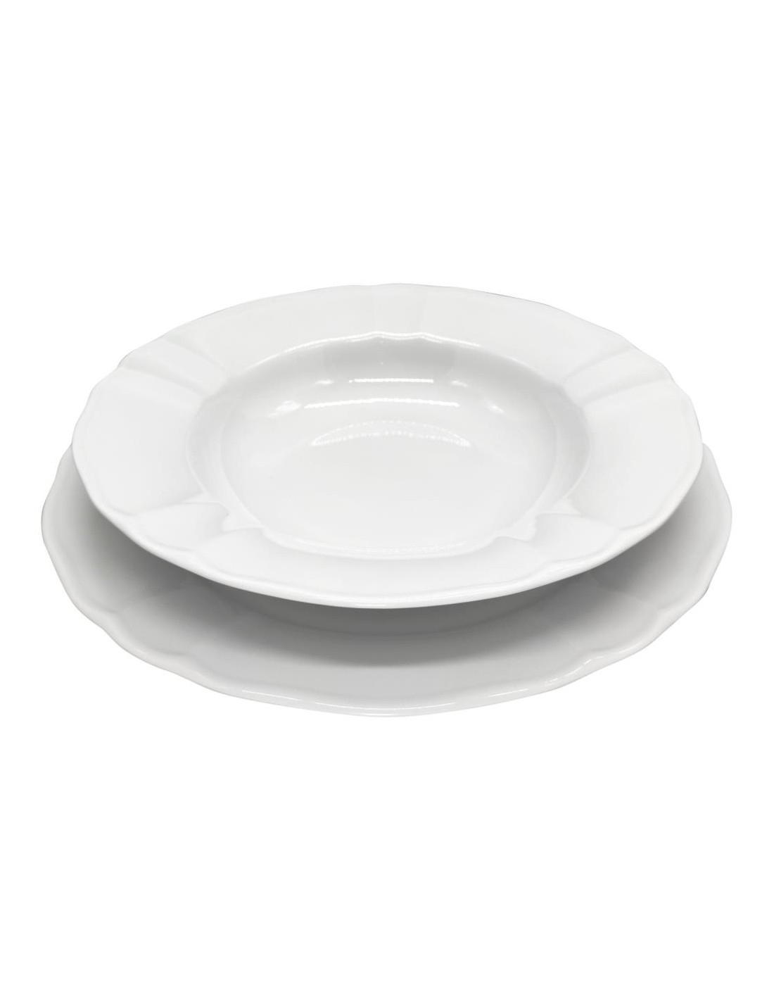 Servizio piatti giornaliro in Porcellana bianca con bordo a rilievo.