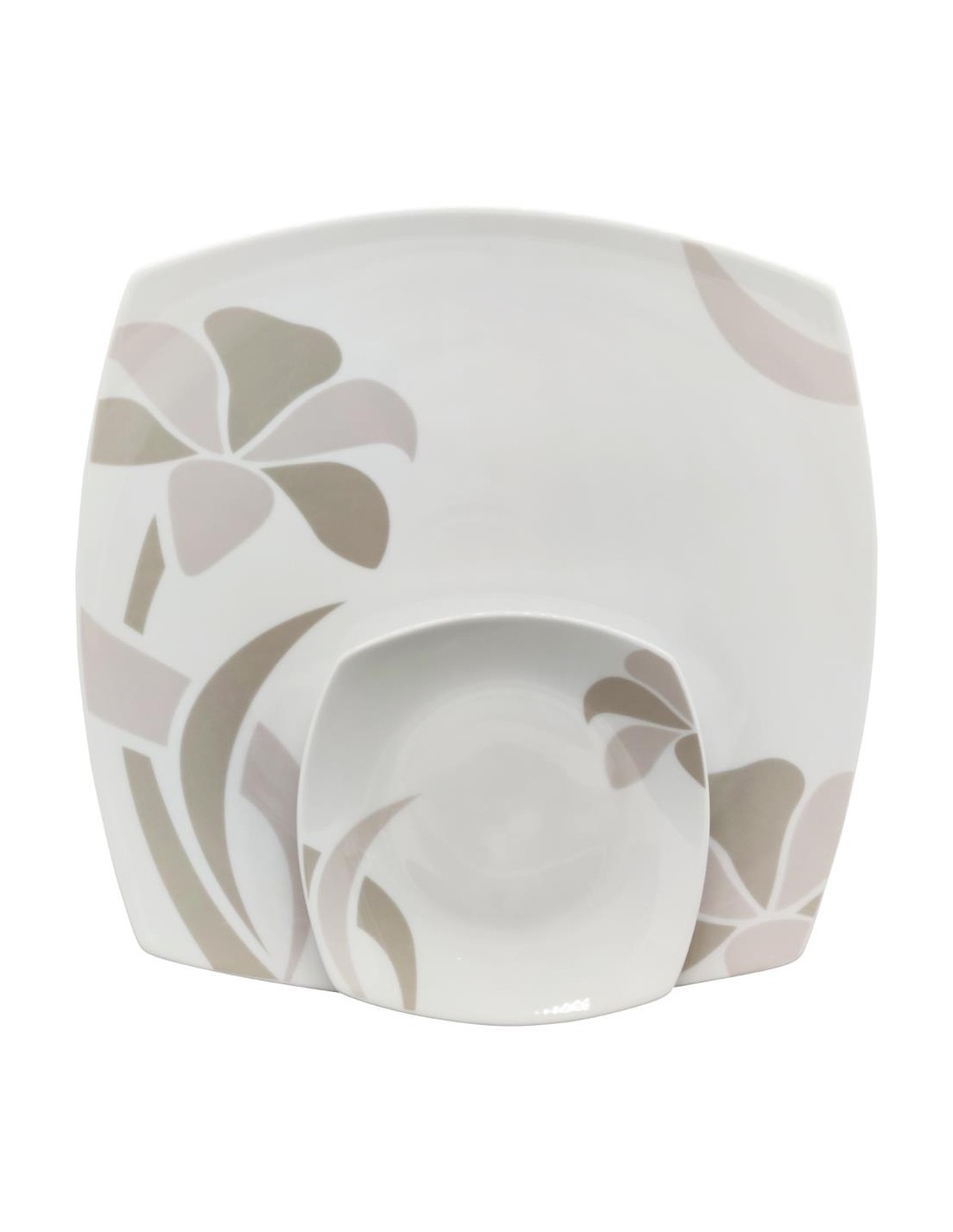 Servizio dolce in porcellana decorata da rifiniture tortora e rosa