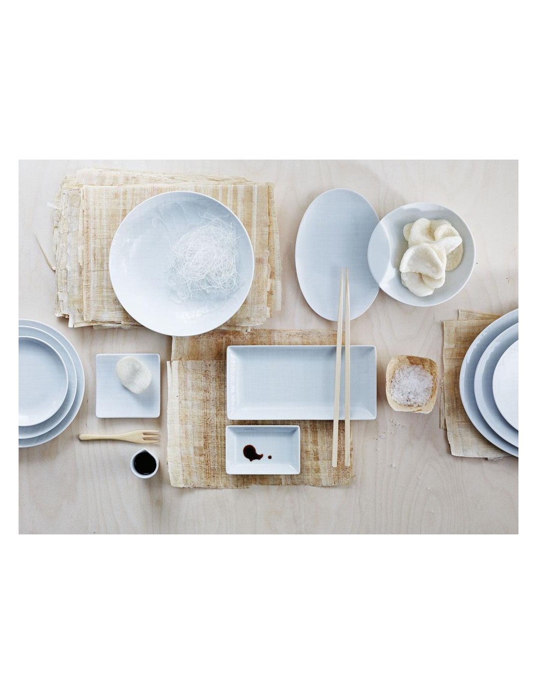 Ciò che rende le stoviglie Mesh così speciali sono le sofisticate forme geometriche e il sottile rilievo che ricorda il bambù.
