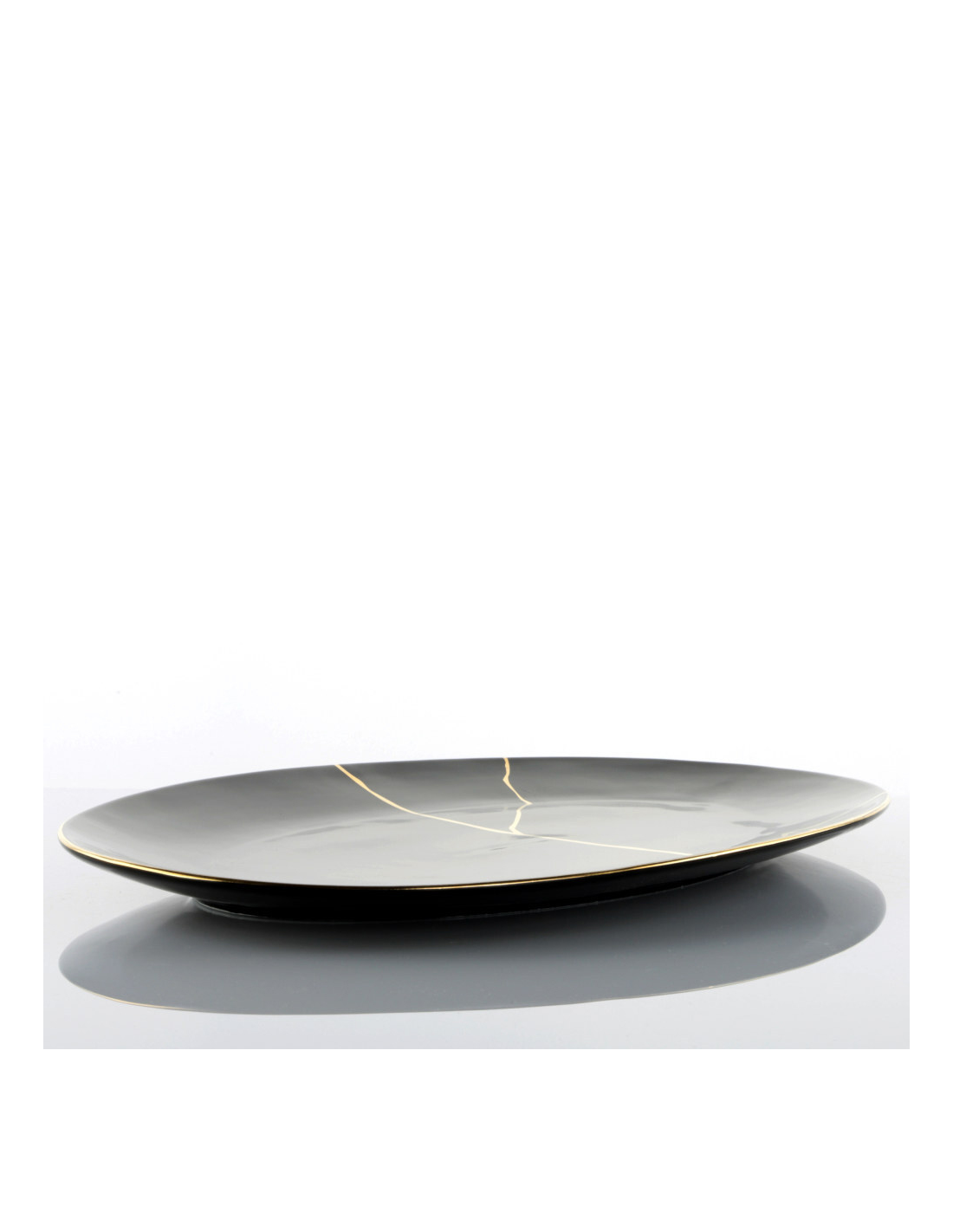 La sua particolare forma irregolare, frutto di un lavoro artigianale, caratterizza ogni articolo, su cui spicca un marchio in oro che crea uno stile inconfondibile per cene scintillanti e di classe.