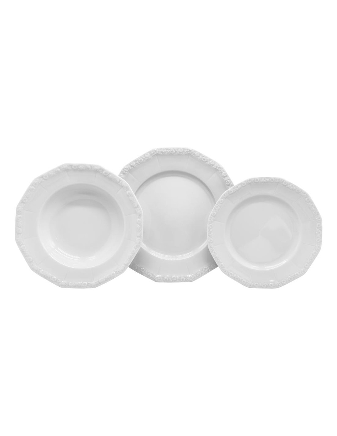 SET PIATTI TAVOLA COMPLETO PER 12 PERSONE IN PORCELLANA PREMIUM A RILIEVO BIANCA