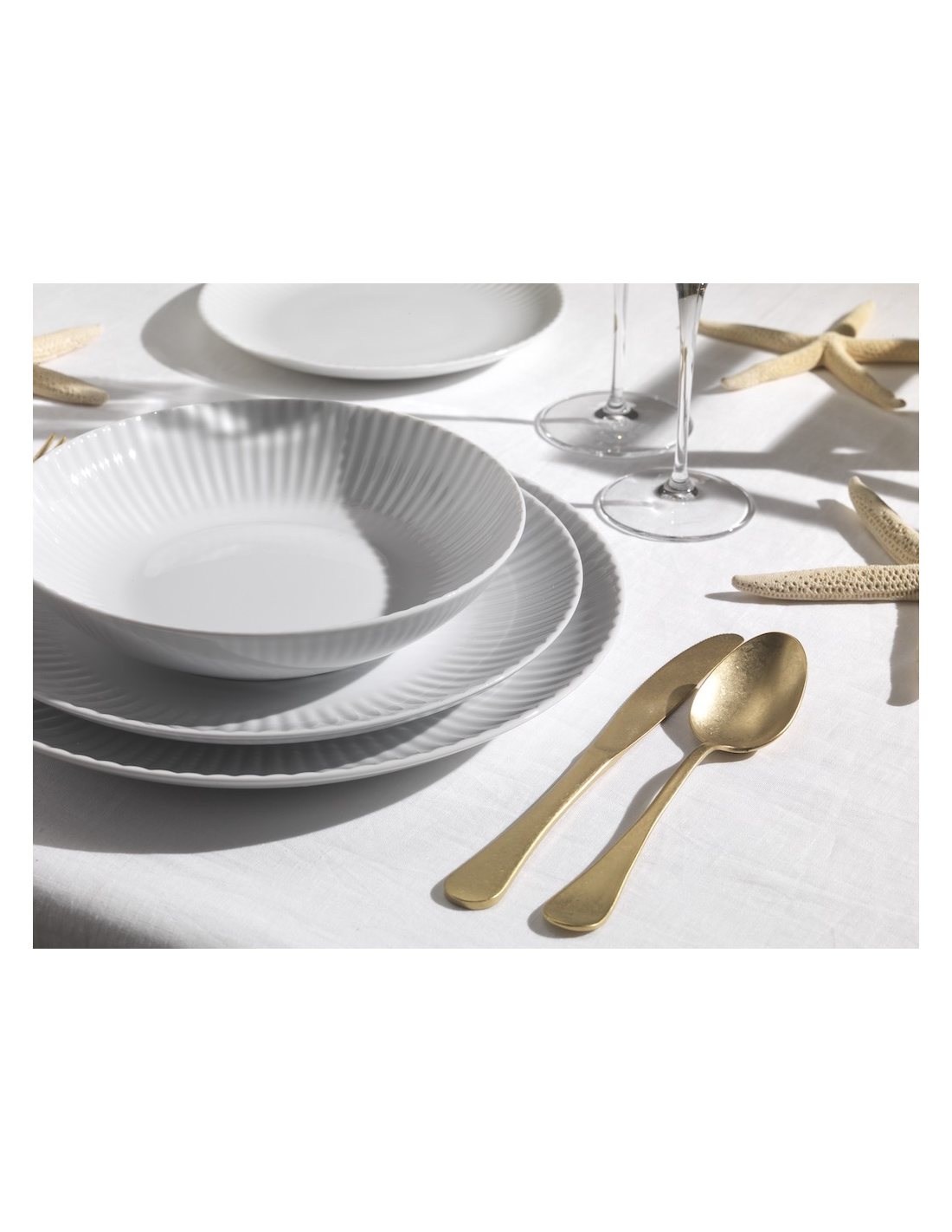 Set 12 piatti giornalieri in porcellana caratterizzata da delicate scanalature a rilievo, che aggiungono un tocco di classe e raffinatezza al loro aspetto.