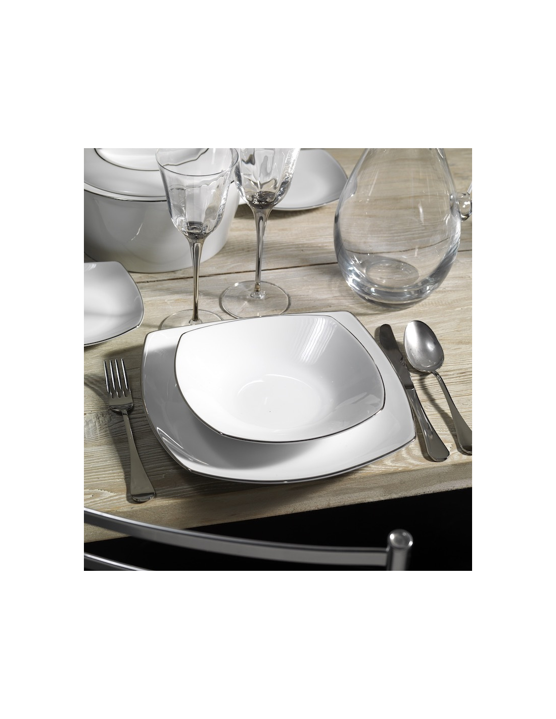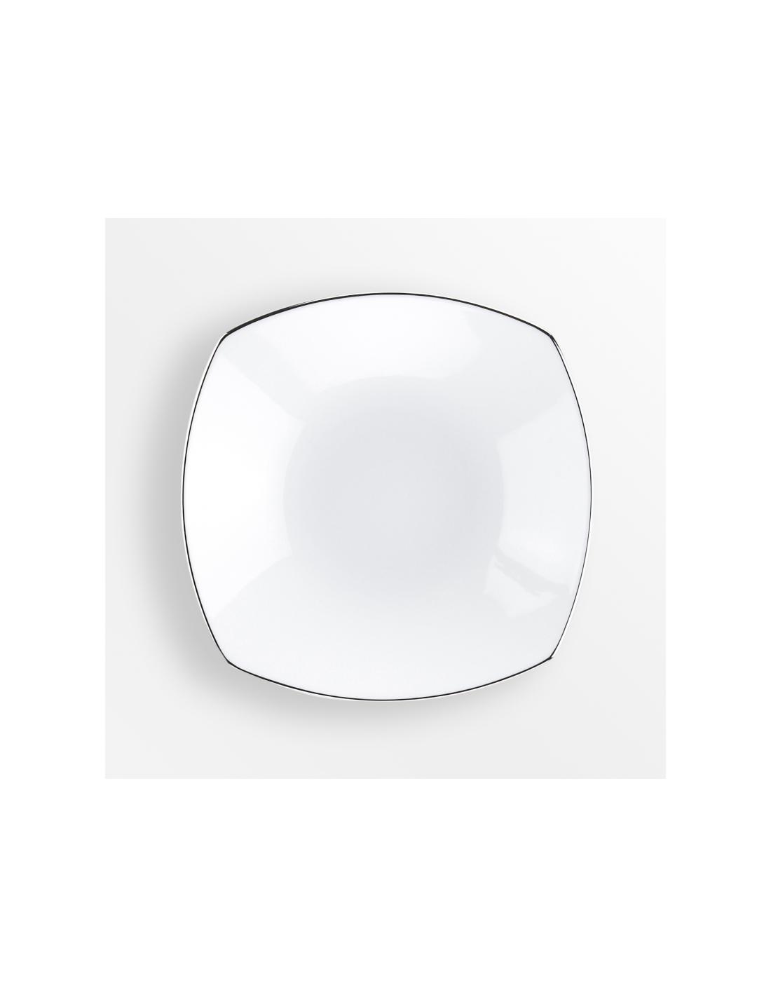 Set 6 piatti fondi eleganti forma quadrata in porcellana bianca filo platino.
