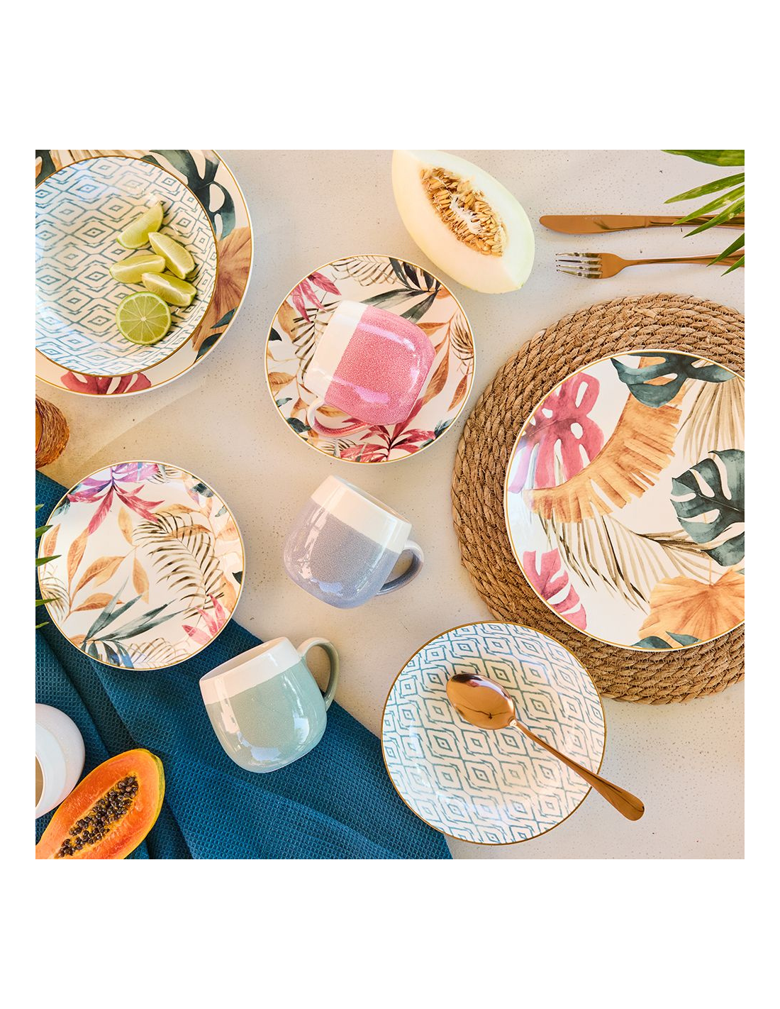 Il servizio piatti 18 pezzi Tropical Rosè fonde l'esotico stile tropicale con una sofisticata palette di colori e decori che ricordano i tropici e la loro natura.