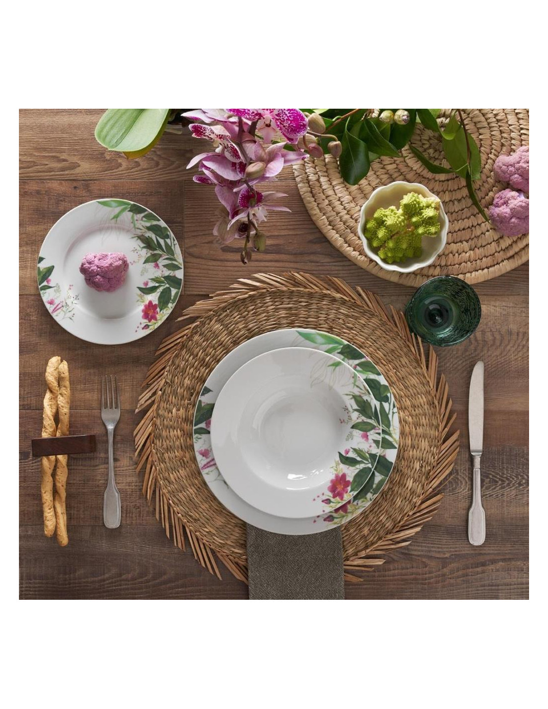Servizio piatti giornaliero in porcellana bianca decorata da fiori e
