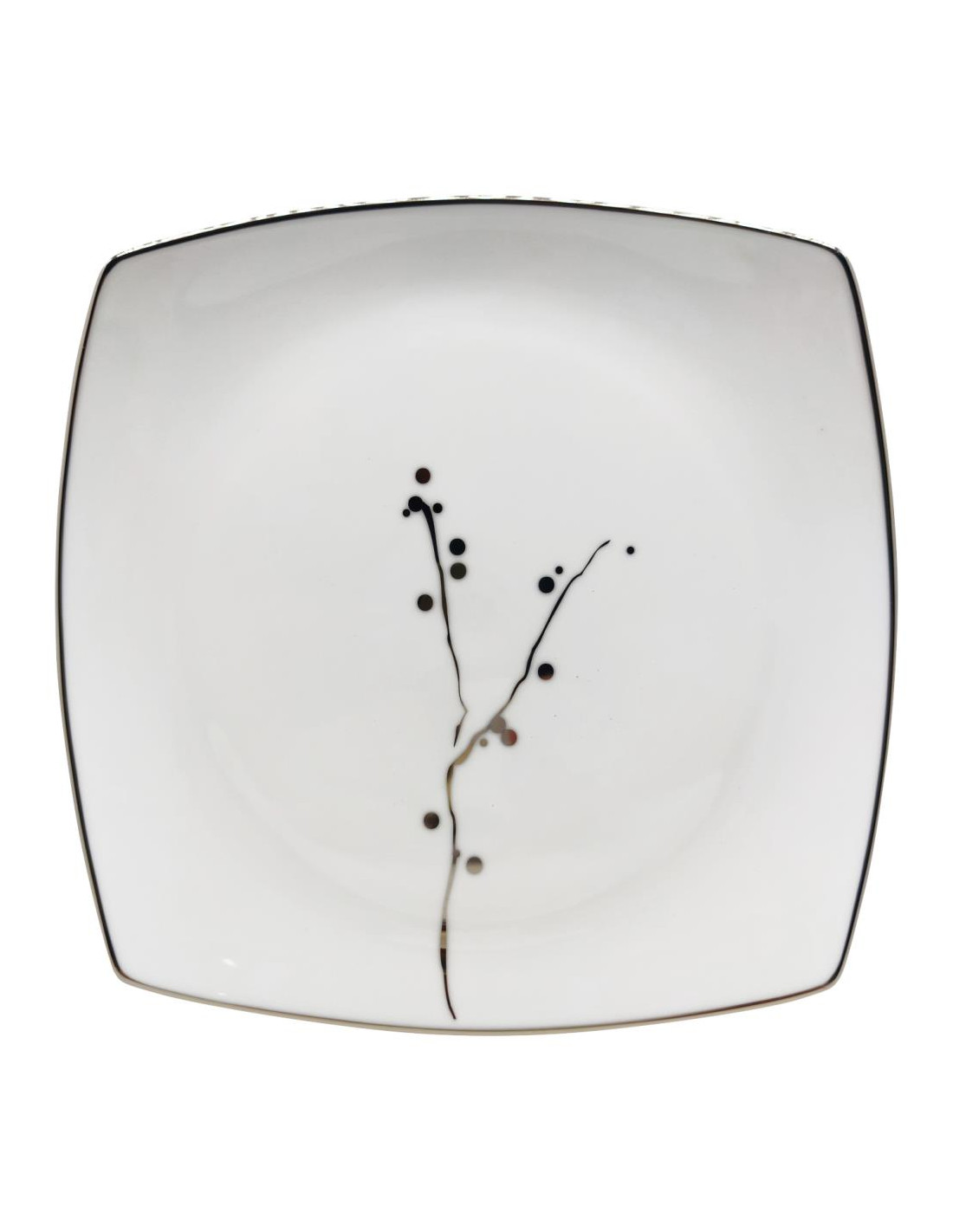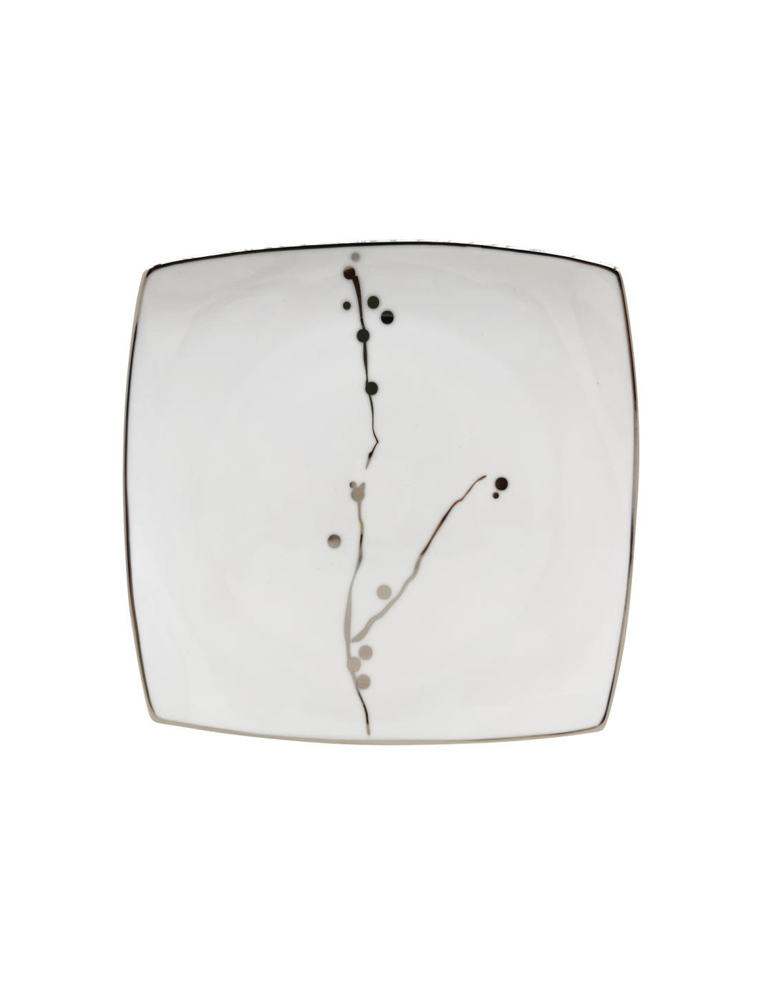 Servizio piatti elegante in porcellana bianca decorata a mano con decoro simil sabbia centrale e bordo in filo platino