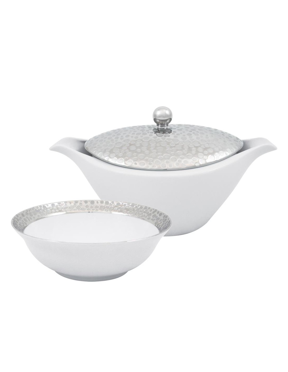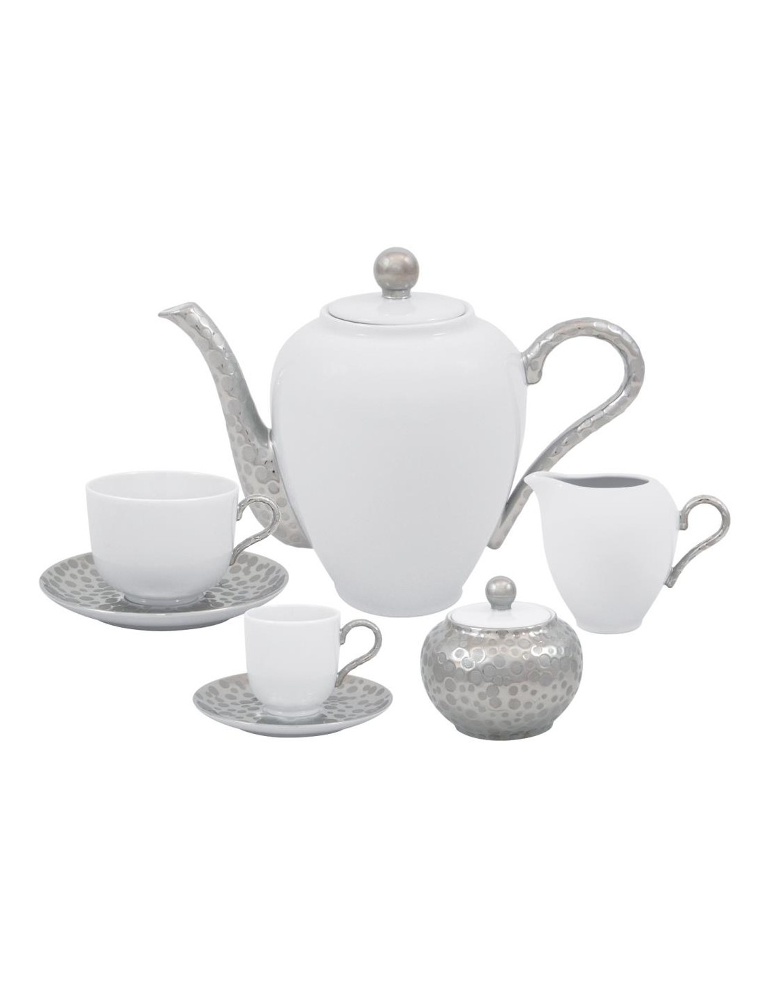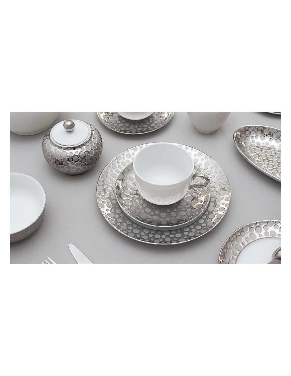 Design by studio porcel stravaganza è una raffinata collezione in platino, che comprende pezzi sia bianchi che decorati. il motivo punteggiato presenta un equilibrio tra mate e platino lucente, possibile grazie a un'esclusiva tecnica della porcellana.
