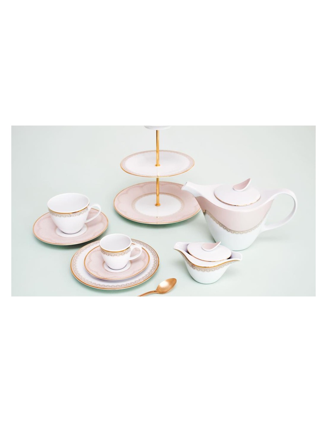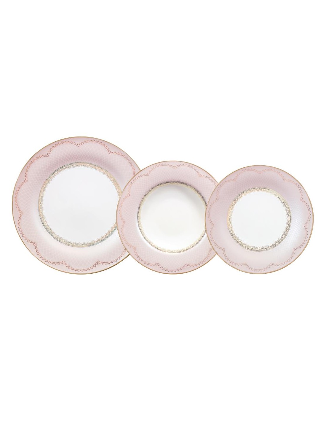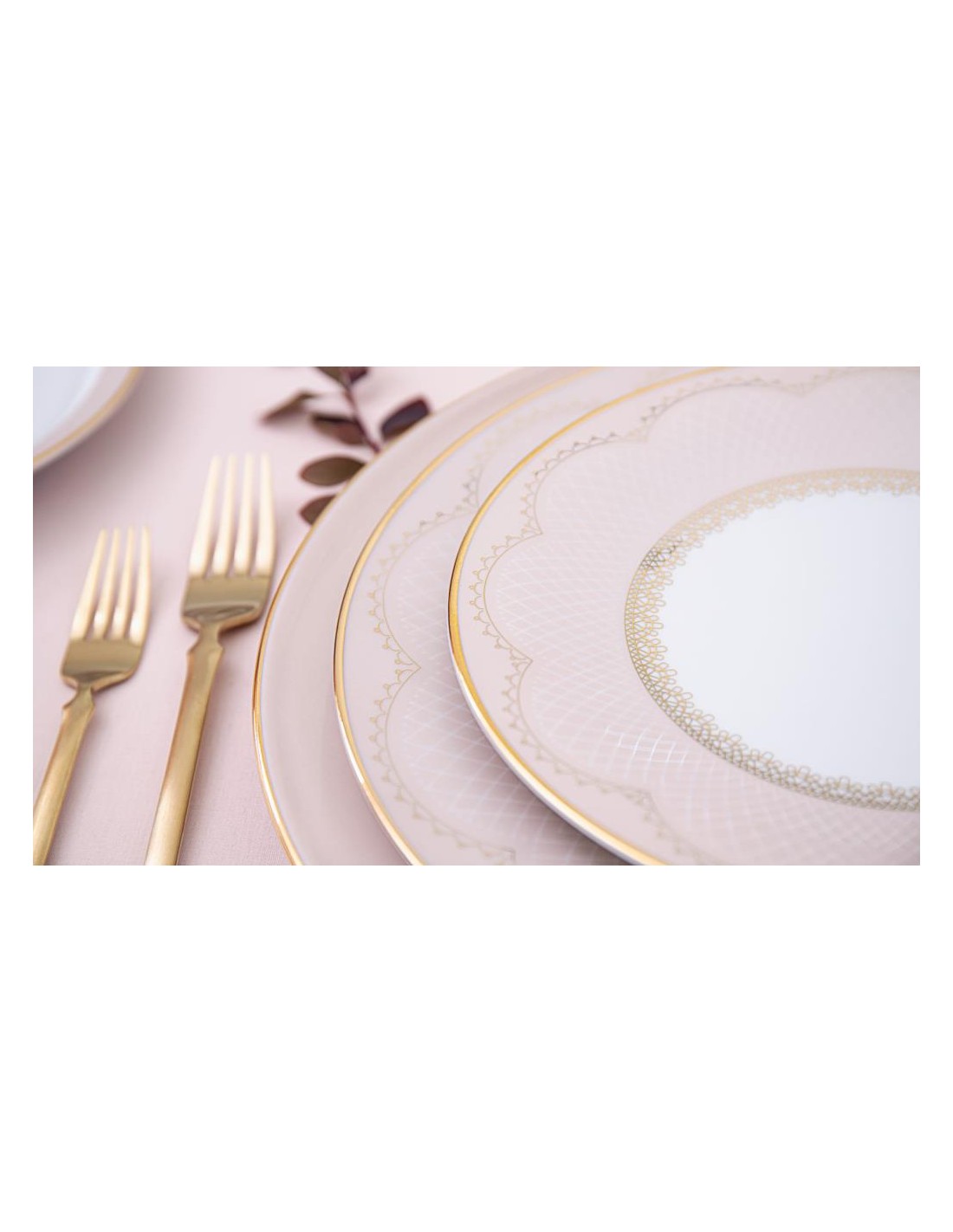 Mescolando un colore rosa molto chiaro con un tocco di dettagli in pizzo dorato, su ogni pezzo di porcellana, trasforma questo set in uno stile da tavolo dall'aspetto delicato, perfetto per un'occasione speciale.