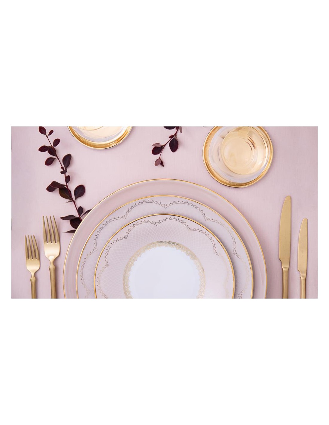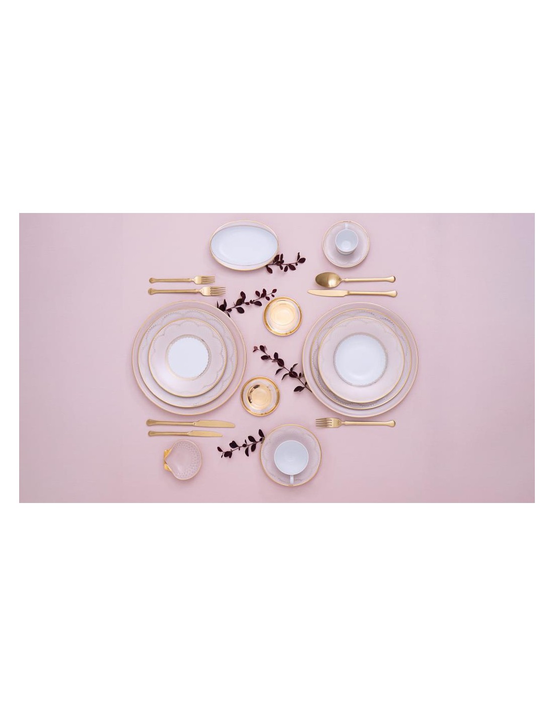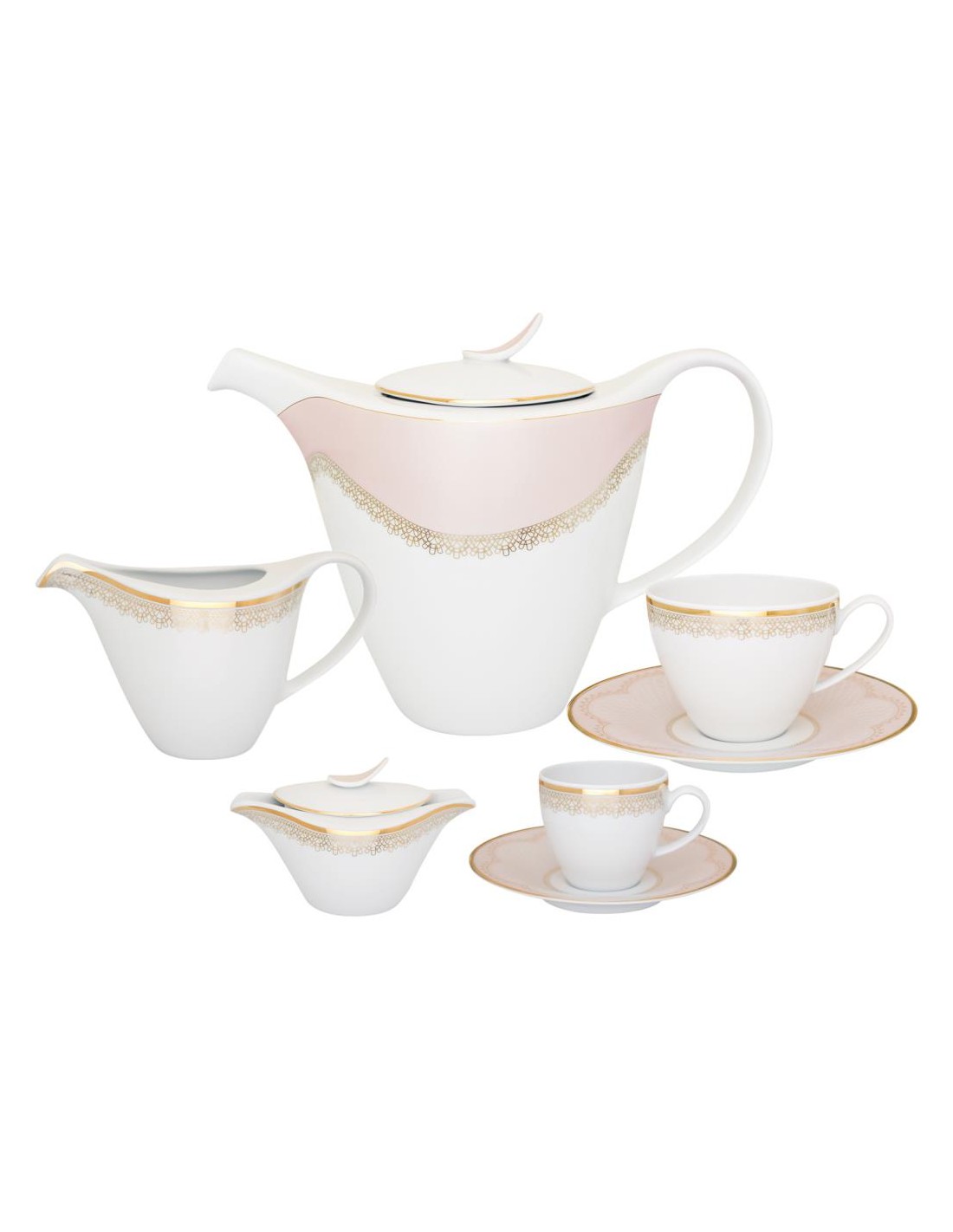 Mescolando un colore rosa molto chiaro con un tocco di dettagli in pizzo dorato, su ogni pezzo di porcellana, trasforma questo set in uno stile da tavolo dall'aspetto delicato, perfetto per un'occasione speciale.