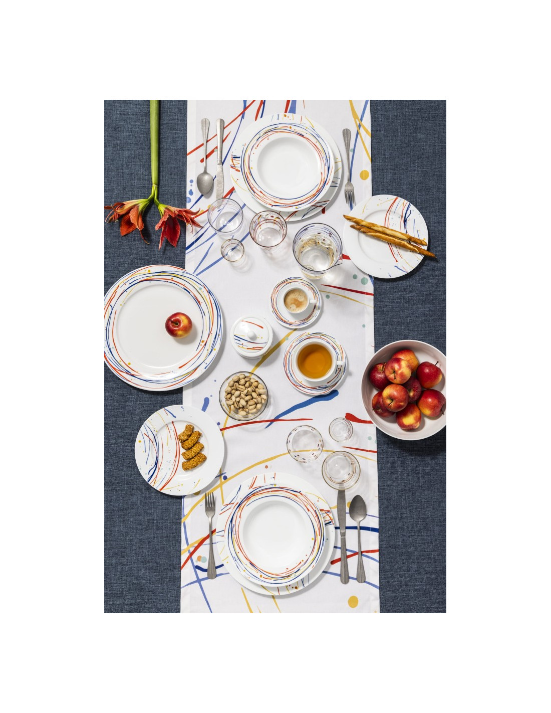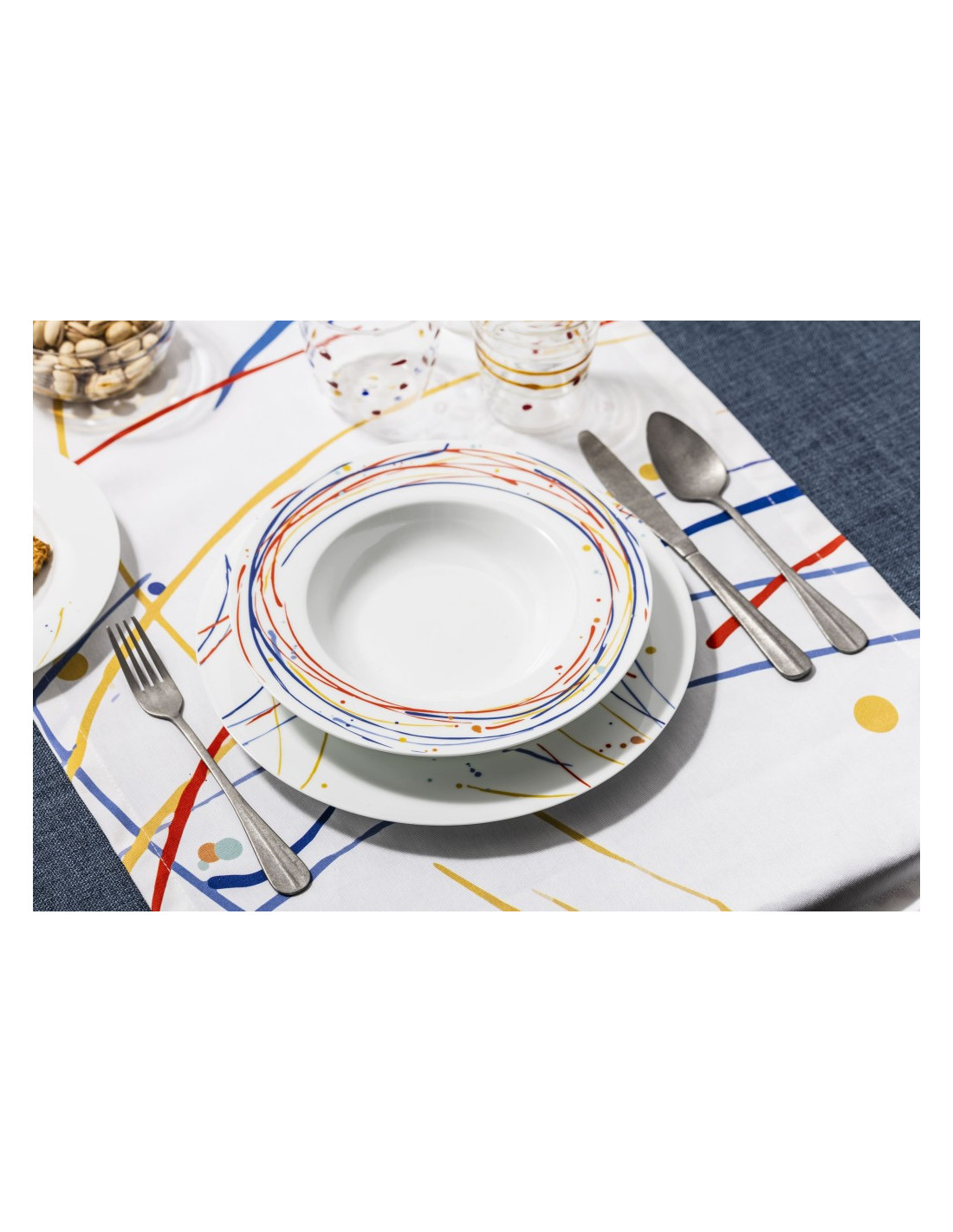Il decoro del servizio di piatti Carnival è vivace e moderno, ispirato