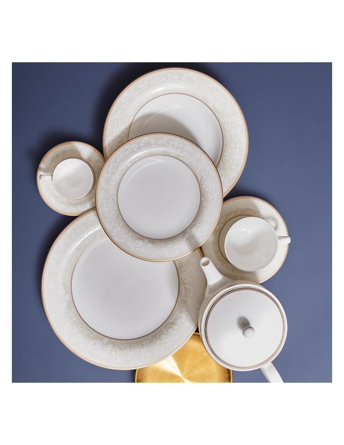 Servizio in porcellana Royal Bone China rifinito con bordo in filo Oro con