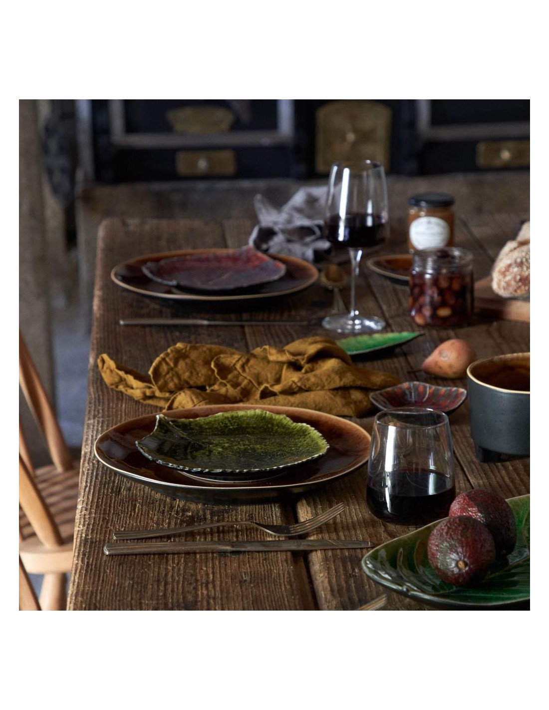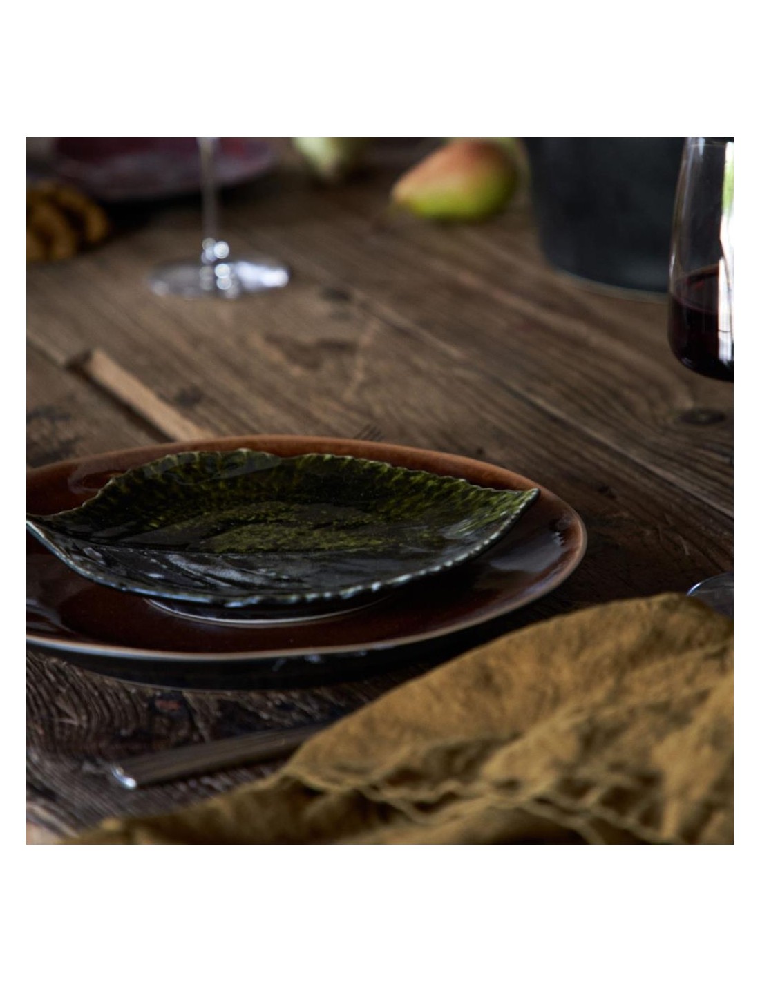 SET 6 PIATTI FRUTTA A FORMA DI FOGLIA IN FINE STONEWARE