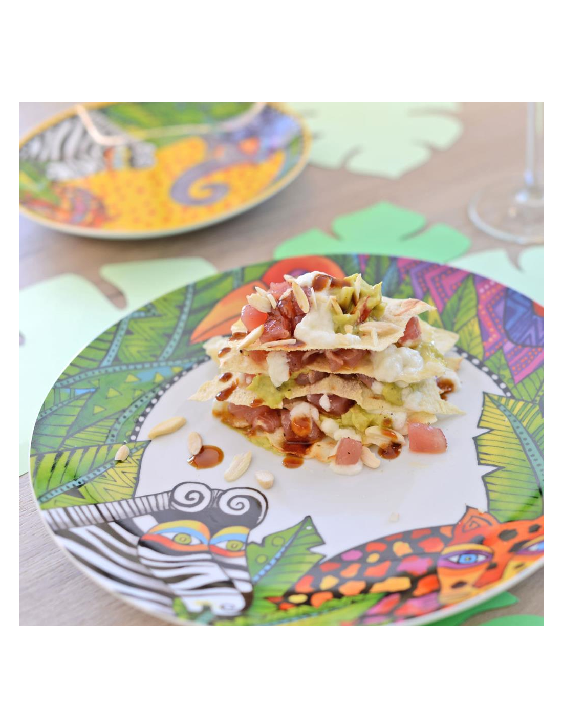 Set 4 piatti piani dal sapore esotico, colorato e magico. L’universo di Laurel Burch continua a portare gioia attraverso la collezione Jungle!