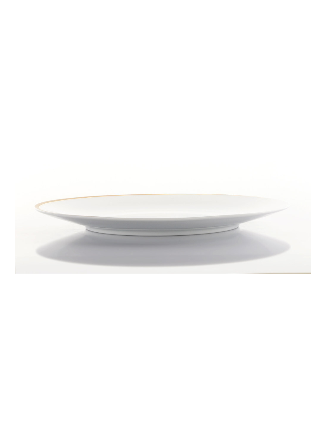 Piatto da portata in porcellana bianca con bordo decorato da rifiniture in oro.