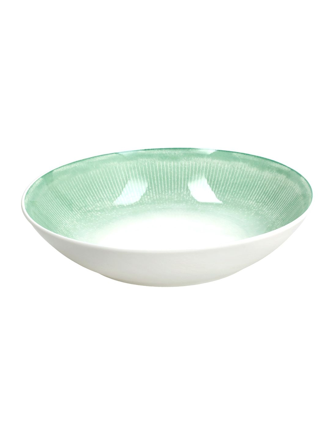Servizio piatti rotondo giornaliero in porcellana decorata da sottili linee radiali bianche che creao un effetto visivo scanalato, lasciando la superficie completamente liscia priva di rilevi.