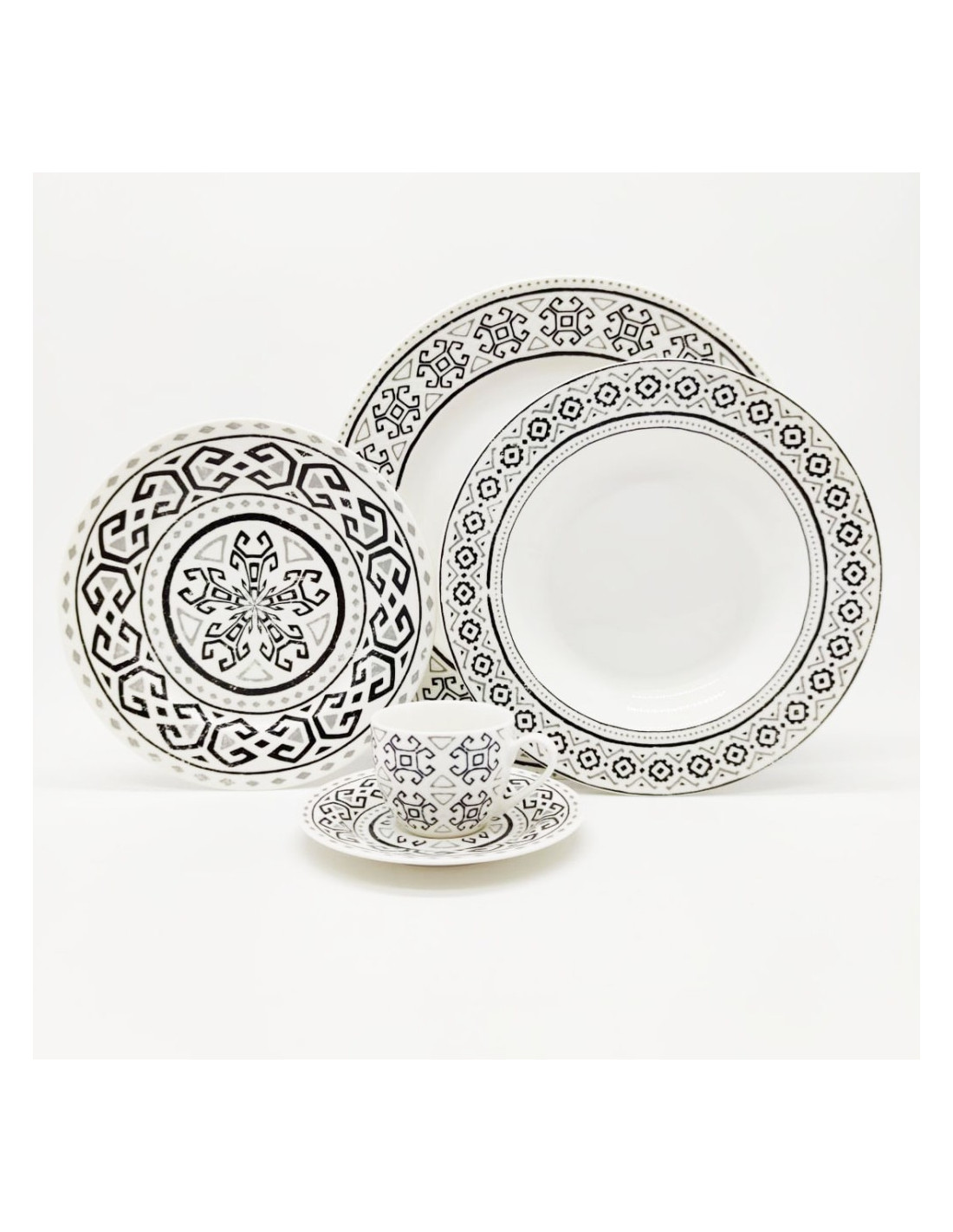 Servizio piatti giornaliero in porcellana decorata con effetto tribale