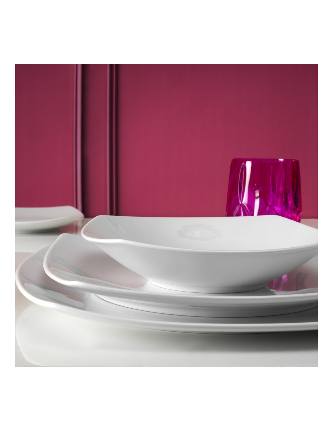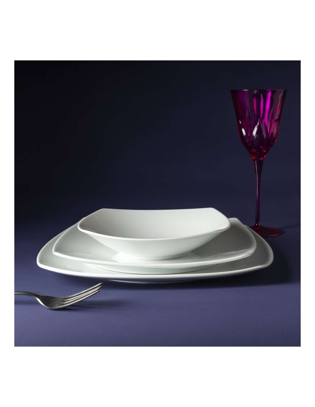 Servizio piatti quadrati giornaliero in porcellana bianca e