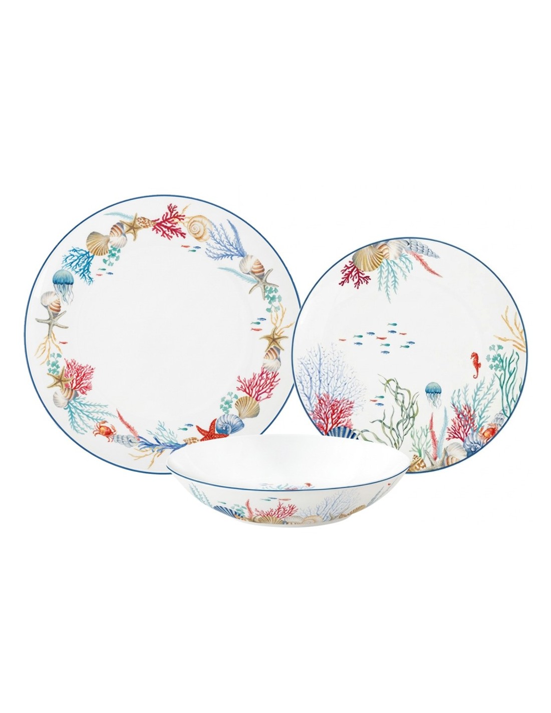 Servizio piatti giornaliero in porcellana con decorazione marina, Liena Sea